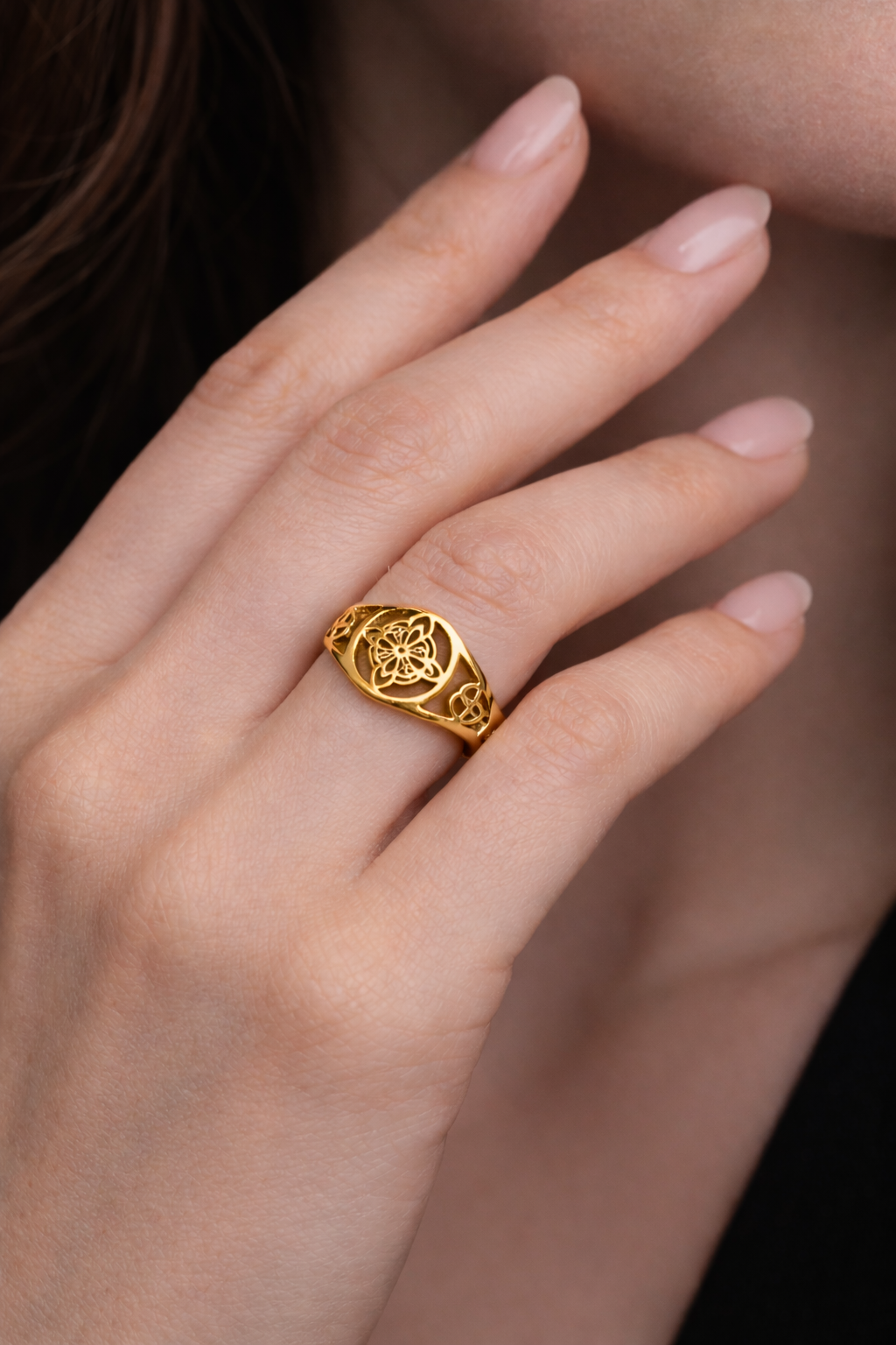 Anillo Ajustable Nudo de Bruja Dorado – Acero Inoxidable (Mod 6)