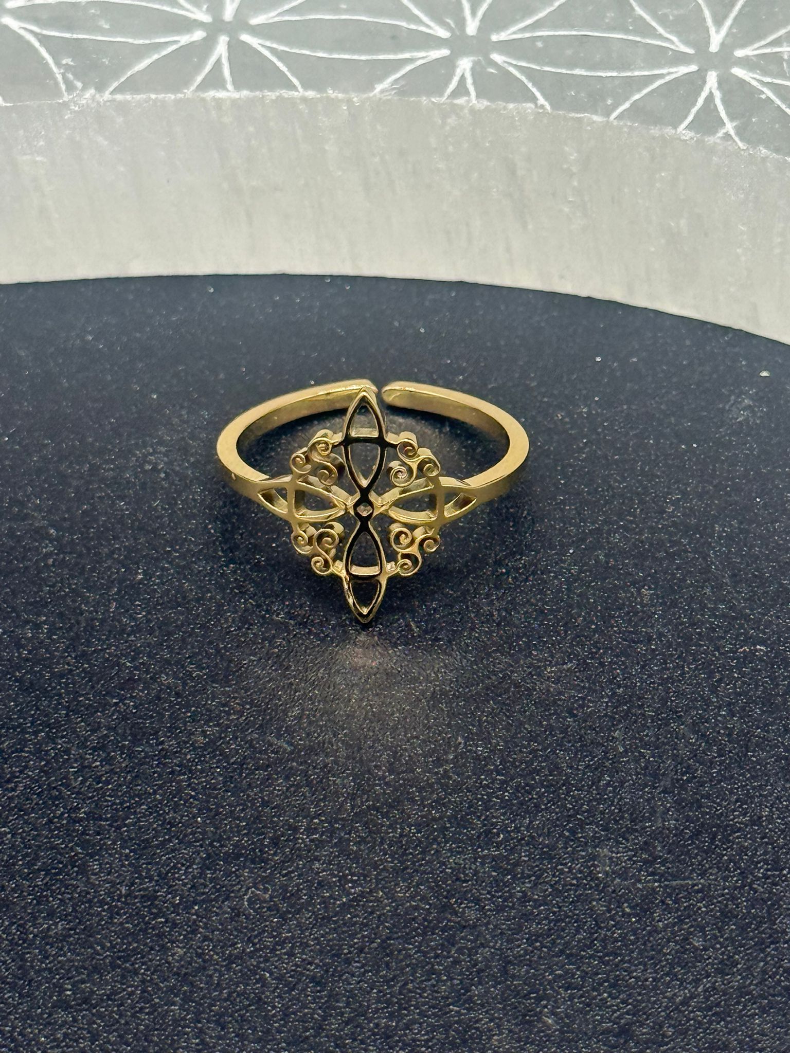 Anillo Nudo de Bruja en Acero Dorado (mod 1)
