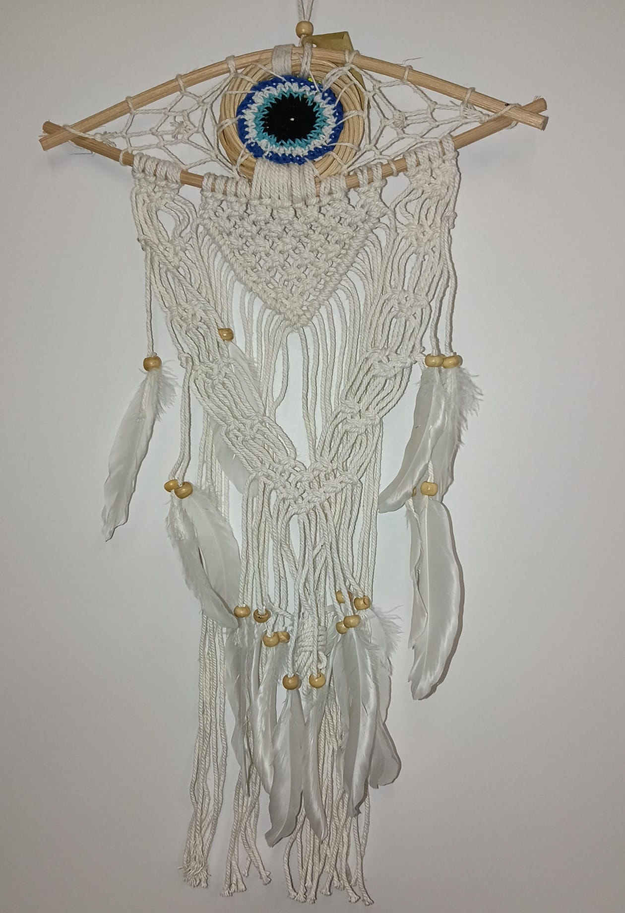 Este atrapasueños con Ojo Turco es una pieza de protección espiritual diseñada para resguardar el descanso, el espacio y el campo energético personal. El atrapasueños actúa como un filtro de energías, permitiendo que los sueños armoniosos fluyan mientras retiene las vibraciones densas o perturbadoras.