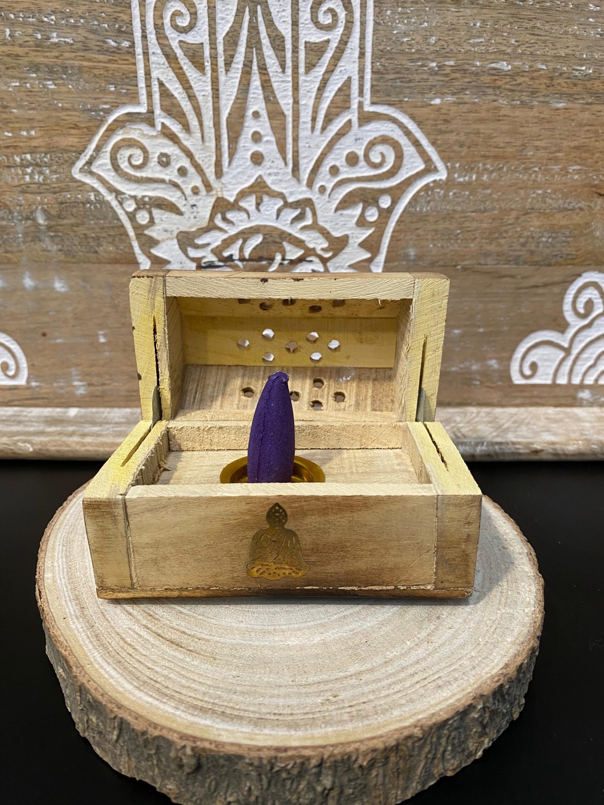Añade un toque de elegancia y serenidad a tu espacio con este baúl de madera clara, diseñado especialmente para quemar conos de incienso. Su estética natural y su acabado suave crean un ambiente relajante y armonioso, ideal para cualquier rincón donde desees invocar calma y buenas energías.