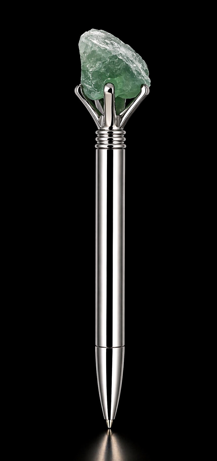 El bolígrafo con fluorita verde es una pieza que combina armonía, claridad mental y equilibrio emocional en un objeto elegante y funcional.