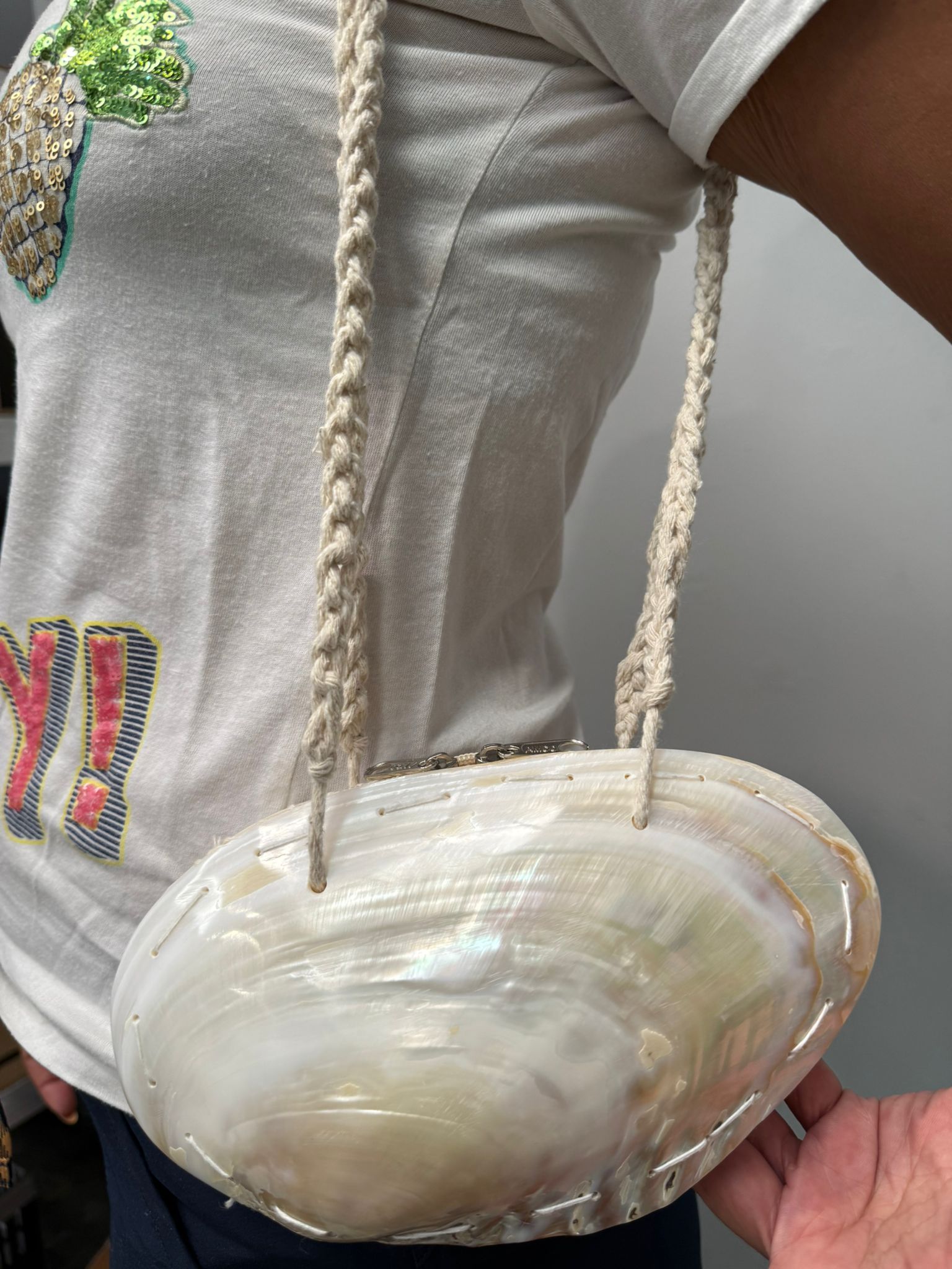 Este hermoso bolso hecho de concha de nácar no solo destaca por su brillo perlado y su elegancia etérea, sino también por la energía espiritual y simbólica que porta. La concha de nácar, también conocida como madreperla, es un material natural asociado con la protección emocional, la intuición y la energía del océano, fuente de vida y sabiduría profunda.