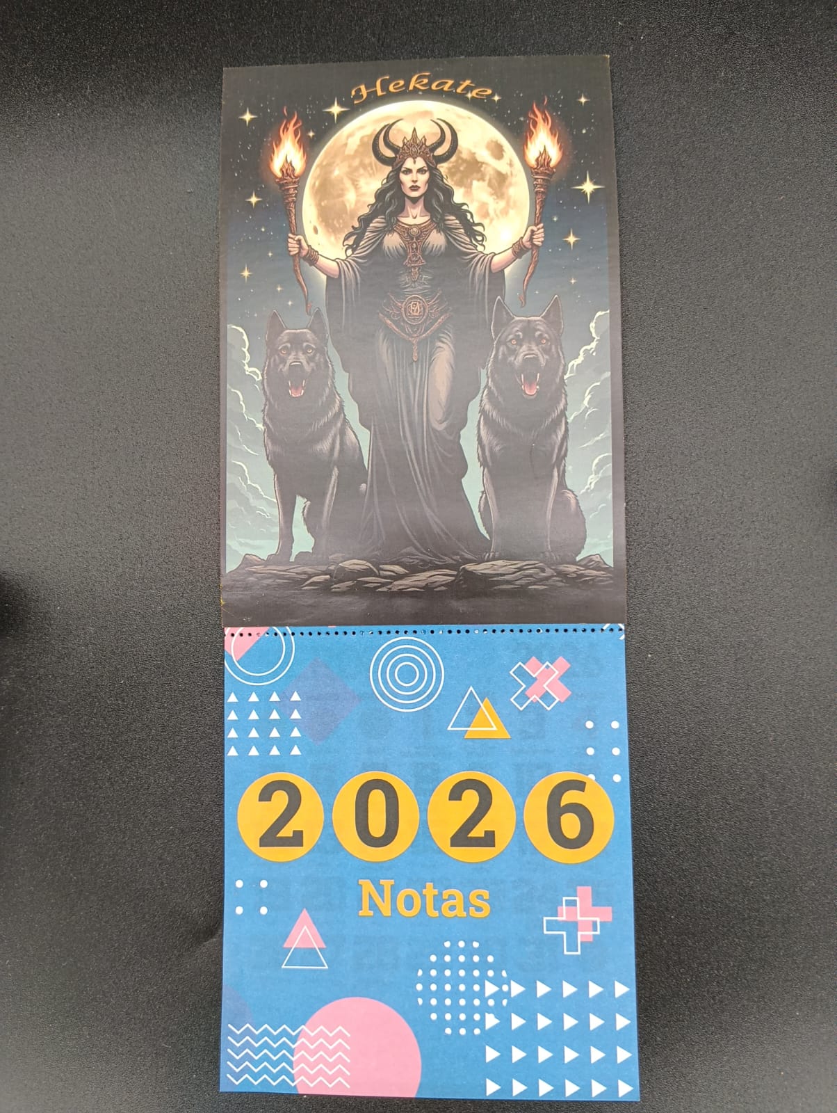 Ideal para practicantes de la senda lunar, devotos de la Diosa o buscadores del equilibrio interior, este calendario es una guía simbólica que recuerda la presencia constante de Hécate como faro en los momentos de oscuridad y renacimiento. Colócalo en tu altar o espacio sagrado para mantener viva la conexión con sus misterios y la sabiduría de los ciclos eternos.