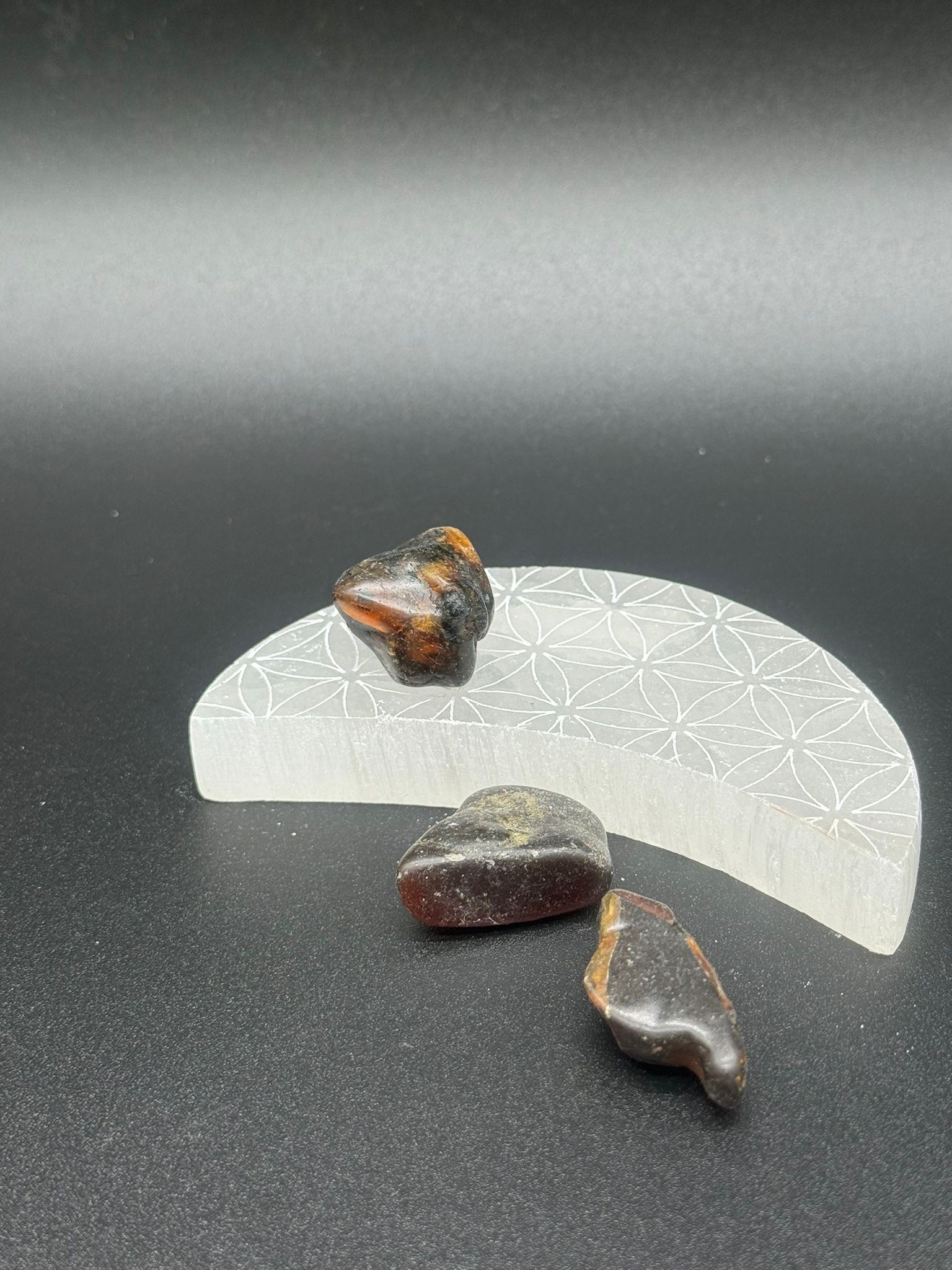 El ámbar es una resina fósil con una energía cálida, luminosa y protectora. Espiritualmente, se lo considera una piedra de sanación profunda, limpieza energética y equilibrio emocional. Ayuda a liberar bloqueos y a transformar energías densas en luz y vitalidad.