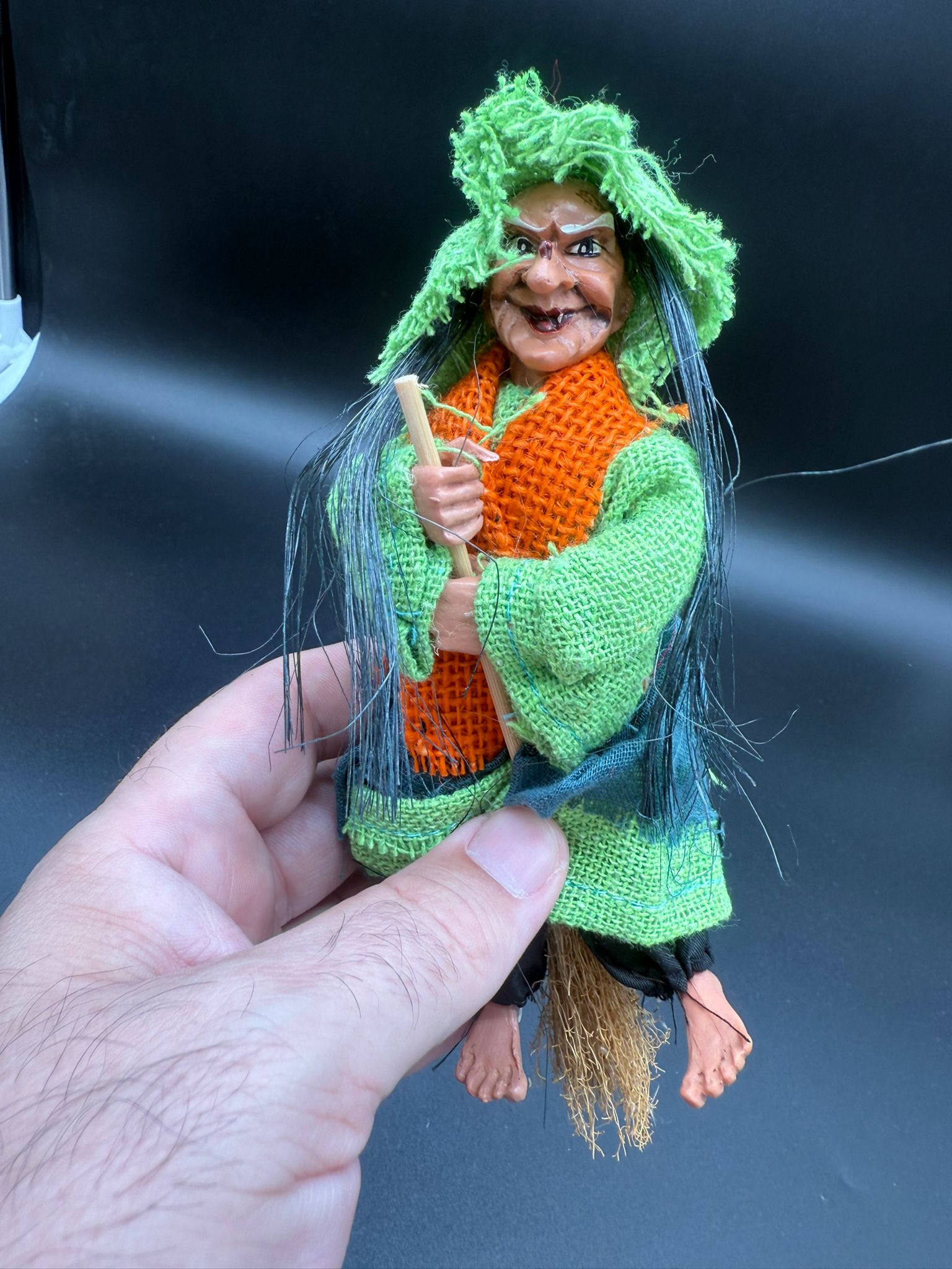 Esta delicada brujita con escoba, de 18 cm de altura, está inspirada en las fuerzas de la naturaleza y la energía sanadora del color verde. Representa la armonía, la abundancia y la renovación constante del espíritu. Colgada en el hogar o en un espacio de trabajo, actúa como un amuleto de crecimiento, prosperidad y equilibrio, conectando con la vibración del elemento Tierra y la energía de la sanación.