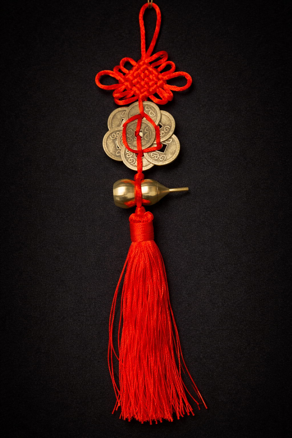 Las monedas chinas, unidas por el característico cordón rojo, representan la unión del cielo y la tierra, activando la energía del dinero y favoreciendo la llegada de oportunidades económicas. Su disposición potencia el flujo constante de riqueza y estabilidad financiera.