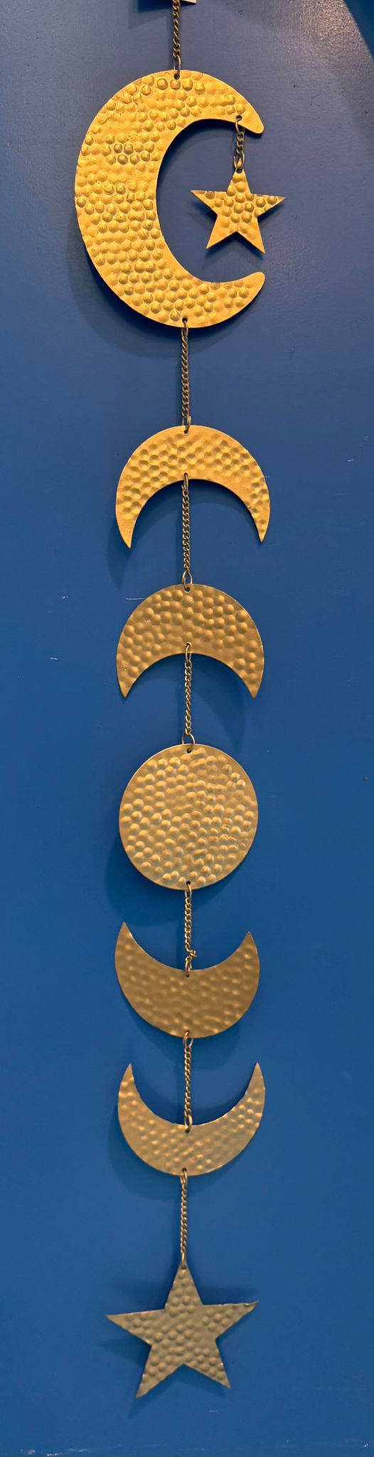 Este delicado colgador decorativo de lunas y estrellas en tono dorado es mucho más que un adorno: es un símbolo de conexión con el cosmos, el equilibrio de los ciclos lunares y la guía de la luz estelar. Cada elemento brilla con un resplandor sutil, atrayendo energías elevadas y recordando que somos parte del universo infinito.