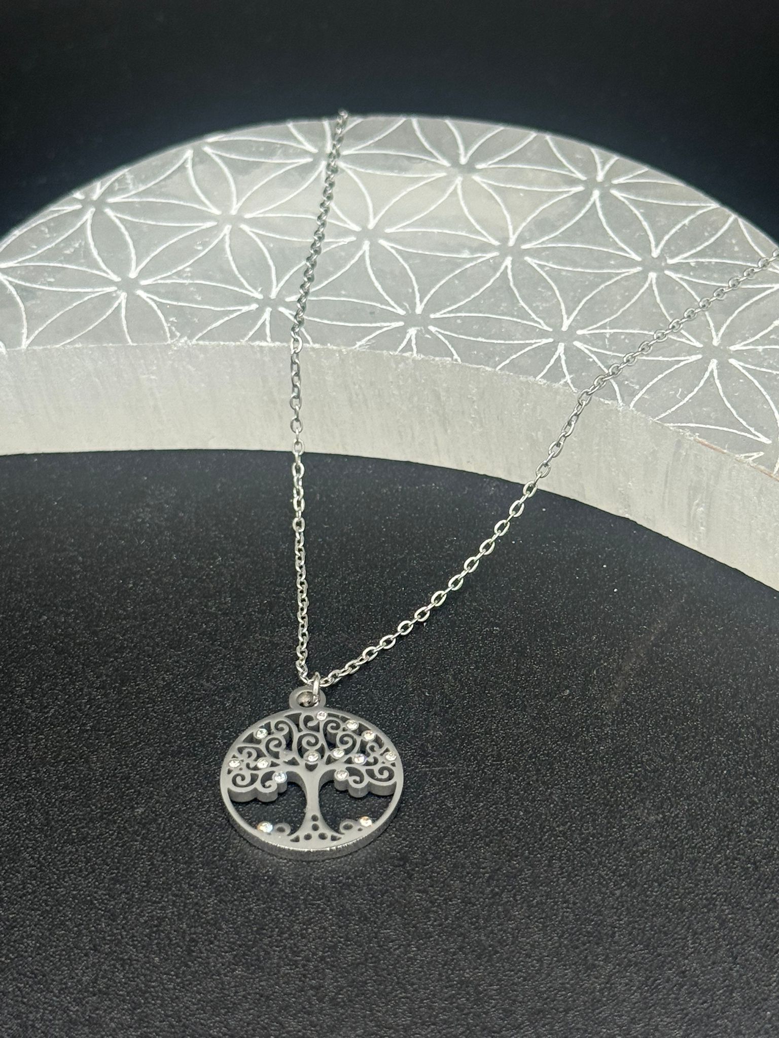 El Árbol de la Vida es uno de los símbolos espirituales más universales y antiguos. Presente en culturas ancestrales de todo el mundo, representa la conexión entre el cielo, la tierra y el ser humano. Este colgante en acero plateado encarna ese vínculo sagrado, funcionando como un amuleto de equilibrio, sabiduría, protección y crecimiento interior.