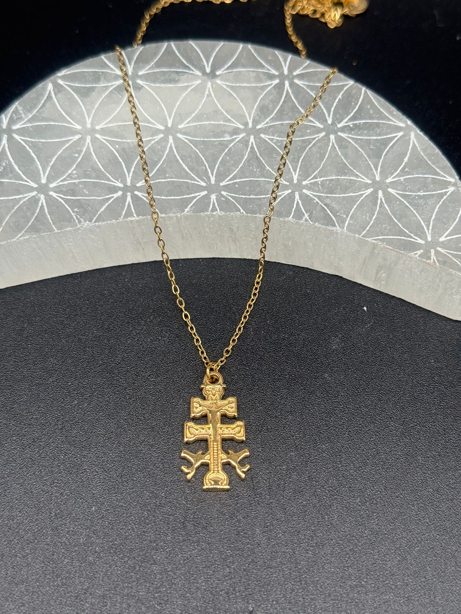 Colgante Cruz de Caravaca Acero Inoxidable Dorado