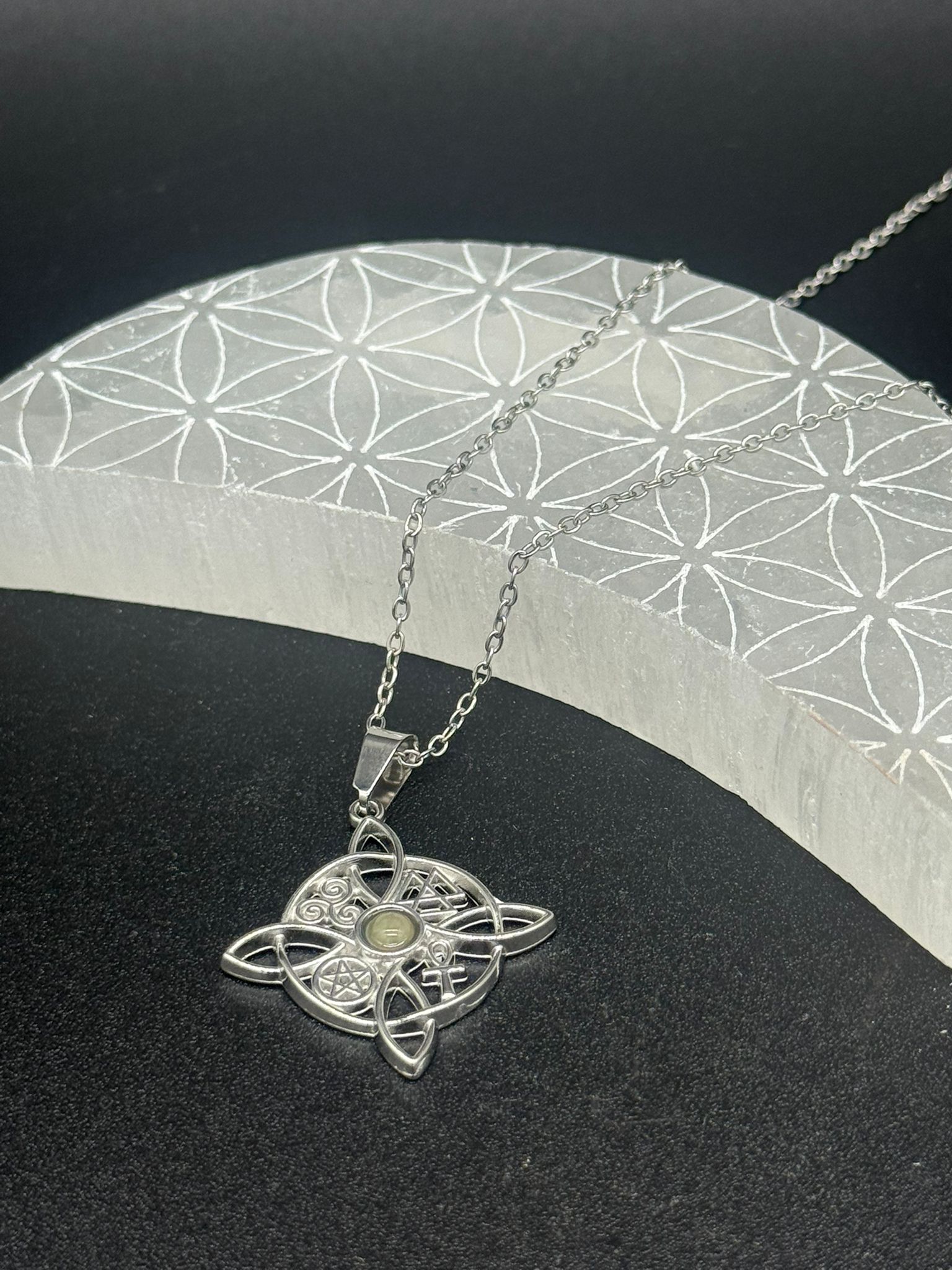 Colgante de Nudo de Bruja con Símbolos Sagrados y Ágata India