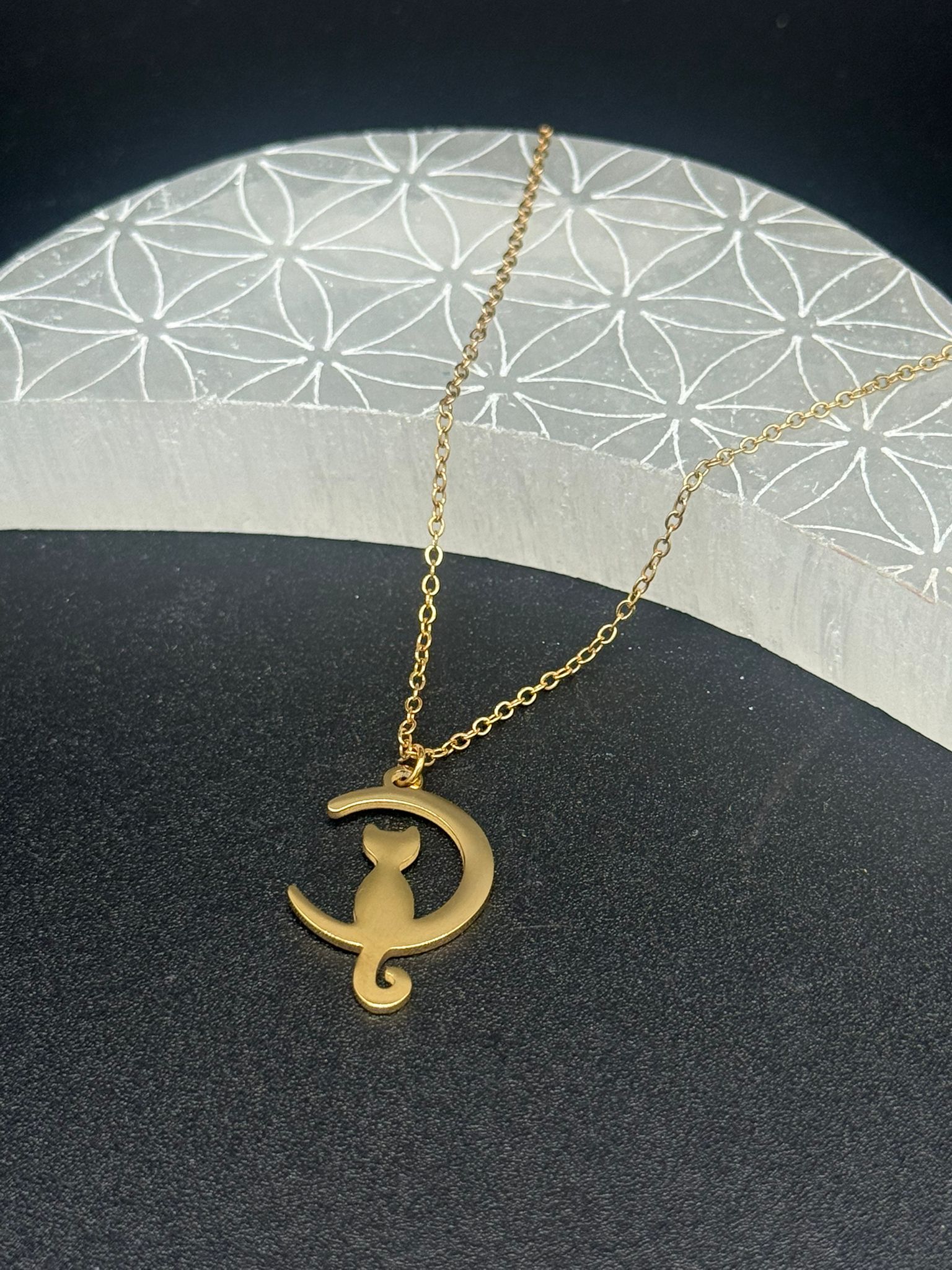 La luna creciente es símbolo de transformación, crecimiento espiritual y apertura hacia nuevas etapas. Asociada con lo femenino, lo intuitivo y lo emocional, potencia la introspección y el desarrollo interior. El gato, por su parte, es un guardián natural de la energía, asociado con la magia, la independencia y la percepción de lo invisible. Juntos forman un talismán que favorece la claridad espiritual, la protección psíquica y el equilibrio personal.