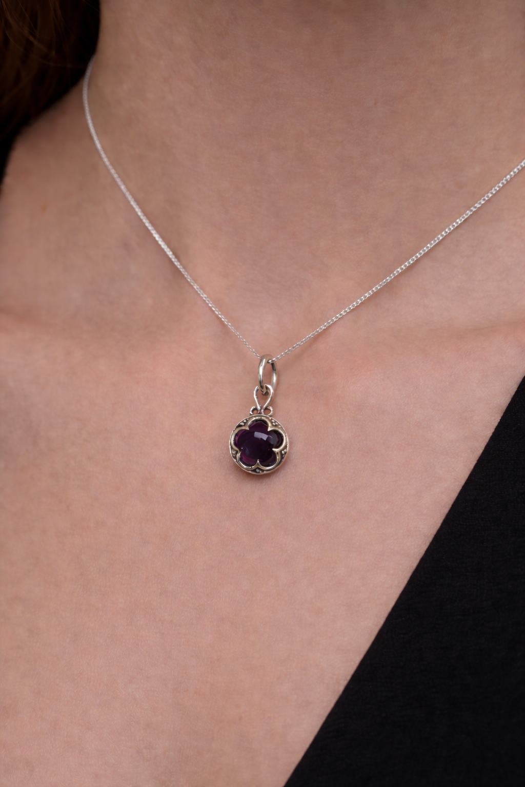 Propiedades: antiguamente los vikingos lo utilizaban como amuleto de protección. Además, la Amatista es considerada un Cristal Maestro, por lo que es altamente protectora y muy poderosa. Destaca por transmitir mucha energía positiva. Es una piedra calmante y ayuda a la meditación. Bloquea y elimina las energías negativas. Simboliza la sabiduría divina.