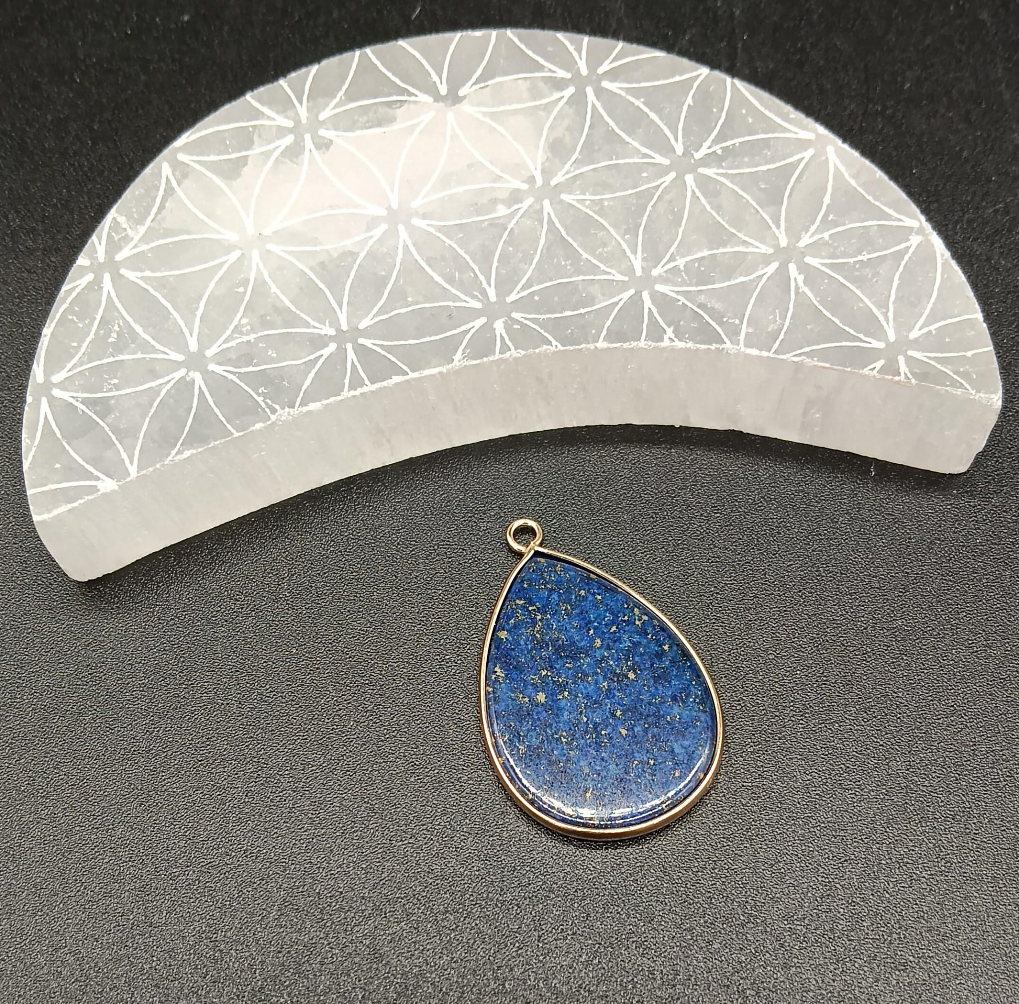 Este colgante en forma de lágrima, elaborado en lapislázuli natural, es una pieza asociada a la sabiduría interior, la verdad y la expansión de la conciencia. El lapislázuli ha sido valorado desde la antigüedad como una piedra de conexión espiritual, claridad mental y conocimiento profundo.