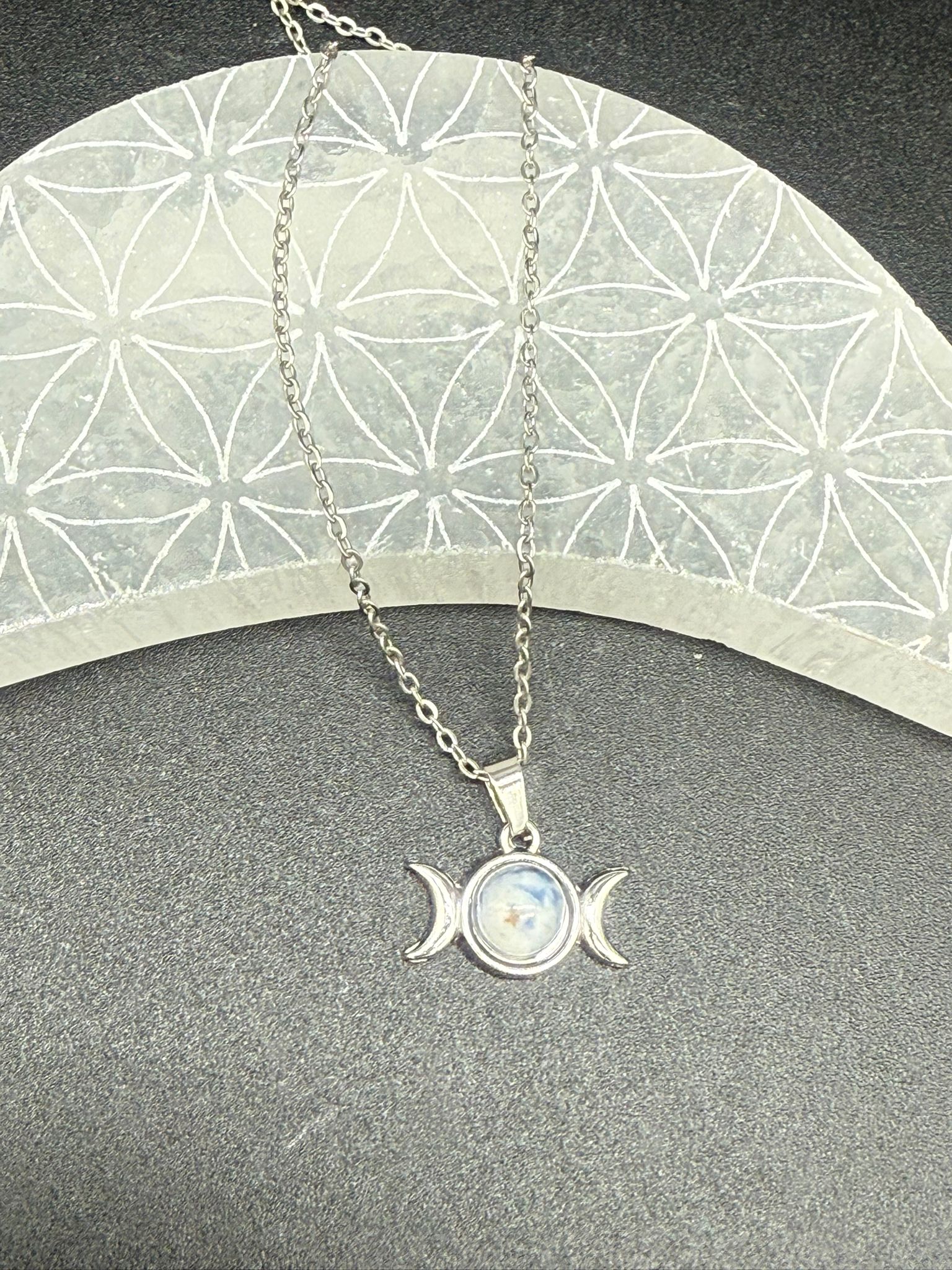 Colgante Triple Luna Sodalita Acero Inoxidable Mod 2
