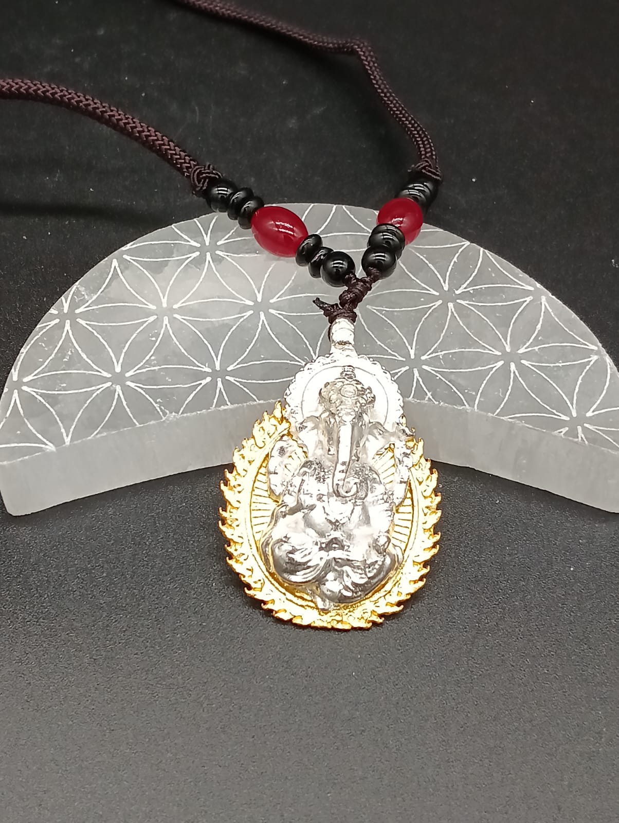 El collar de Ganesha plateado es un amuleto que combina la sabiduría ancestral del dios elefante con la vibración protectora y serena del color plateado. Ganesha, el Señor de los Caminos y Eliminador de Obstáculos, guía a quienes buscan claridad, equilibrio y armonía en sus proyectos y vida diaria.