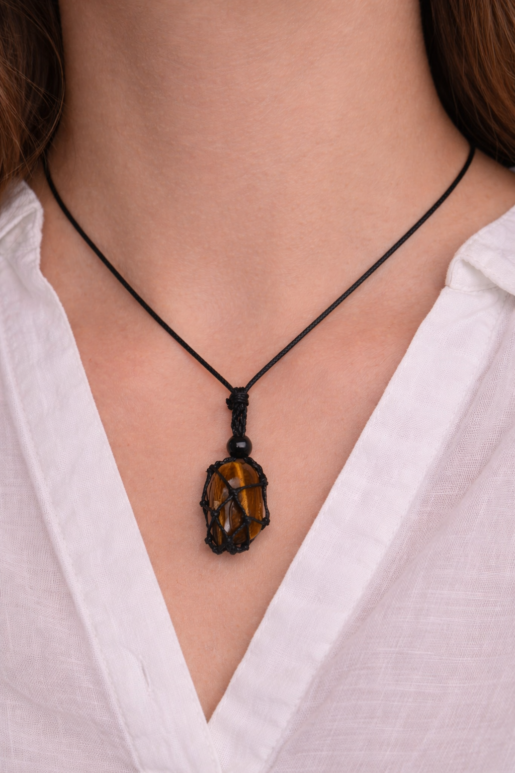 El cordón negro trenzado simboliza protección y conexión con la tierra, mientras que el diseño envolvente actúa como un soporte seguro para tus cristales, permitiendo que estén en contacto directo con tu energía. Es perfecto para trabajar con piedras según tu intención: protección, equilibrio, amor, abundancia o limpieza energética.