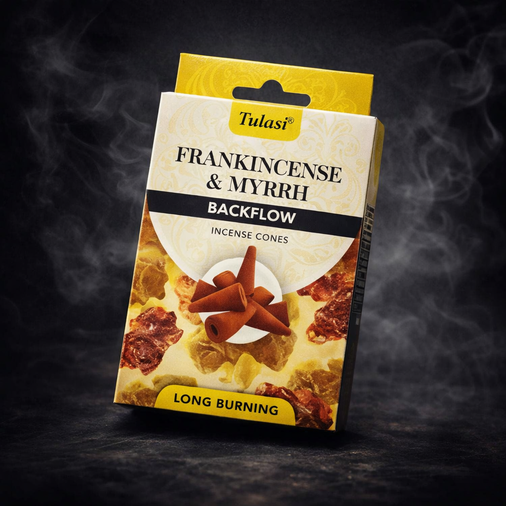 Incienso de reflujo marca Tulasi aroma Franquincienso y Mirra (10 conos por caja)