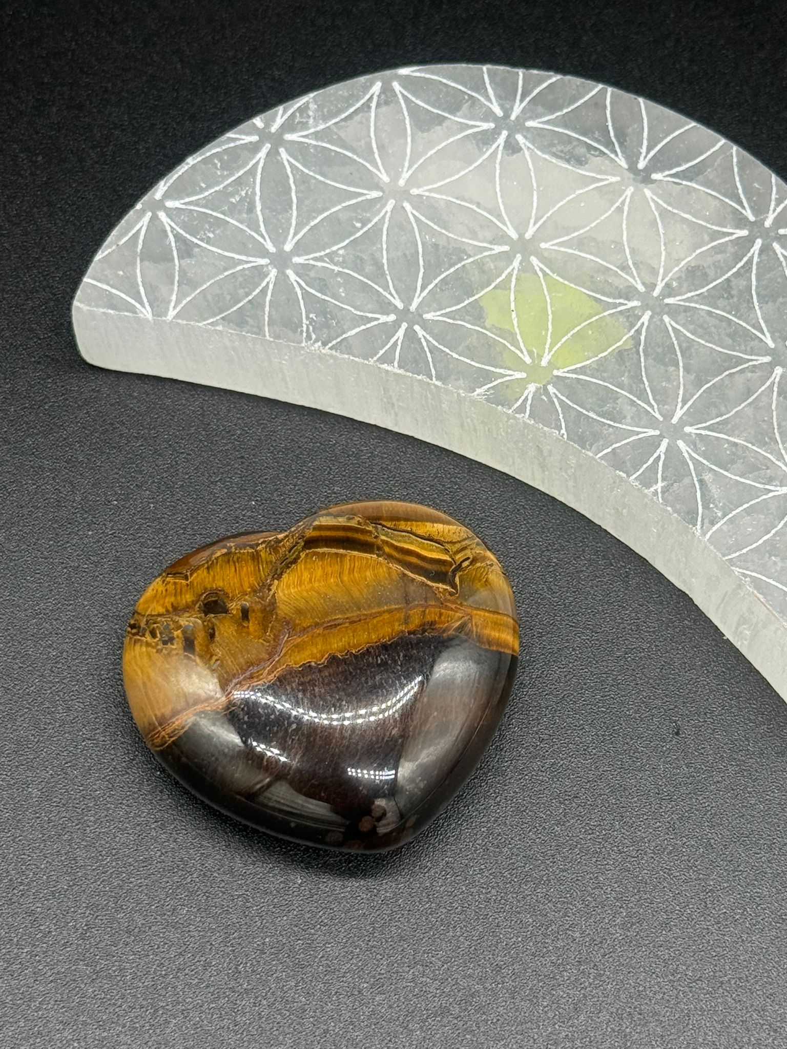 Esta piedra trabaja sobre el chakra plexo solar, fortaleciendo la autoestima, la voluntad y el equilibrio emocional. En forma de corazón, suaviza su energía, convirtiéndose en una herramienta ideal para combinar la fuerza con la compasión y el amor propio.