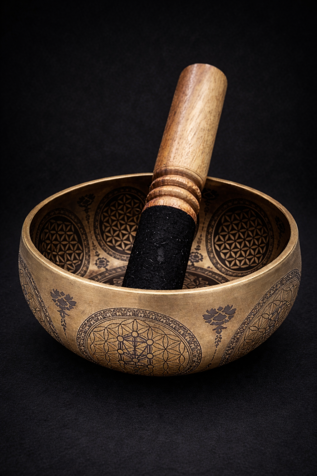 Cuenco Tibetano Grabado con Baqueta – 13 cm de diámetro