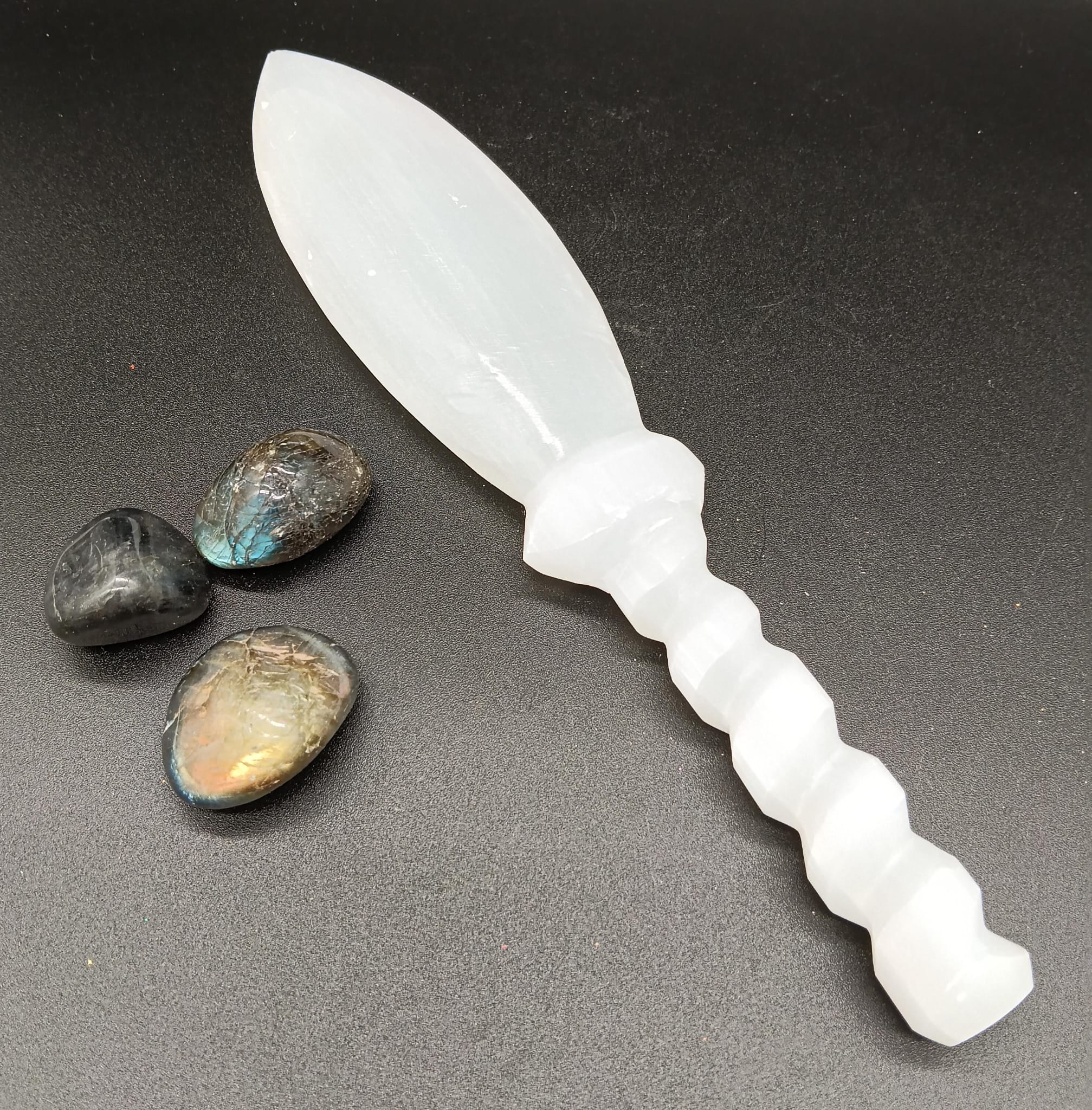 Estas dagas de selenita son la herramienta perfecta para la meditación o los rituales . Estas hojas cortan la energía negativa y permiten canalizar la propia energía hacia el exterior, hacia el aura. Tenga en cuenta que no son armas, son herramientas de meditación y deben usarse con mucho cuidado y precisión.