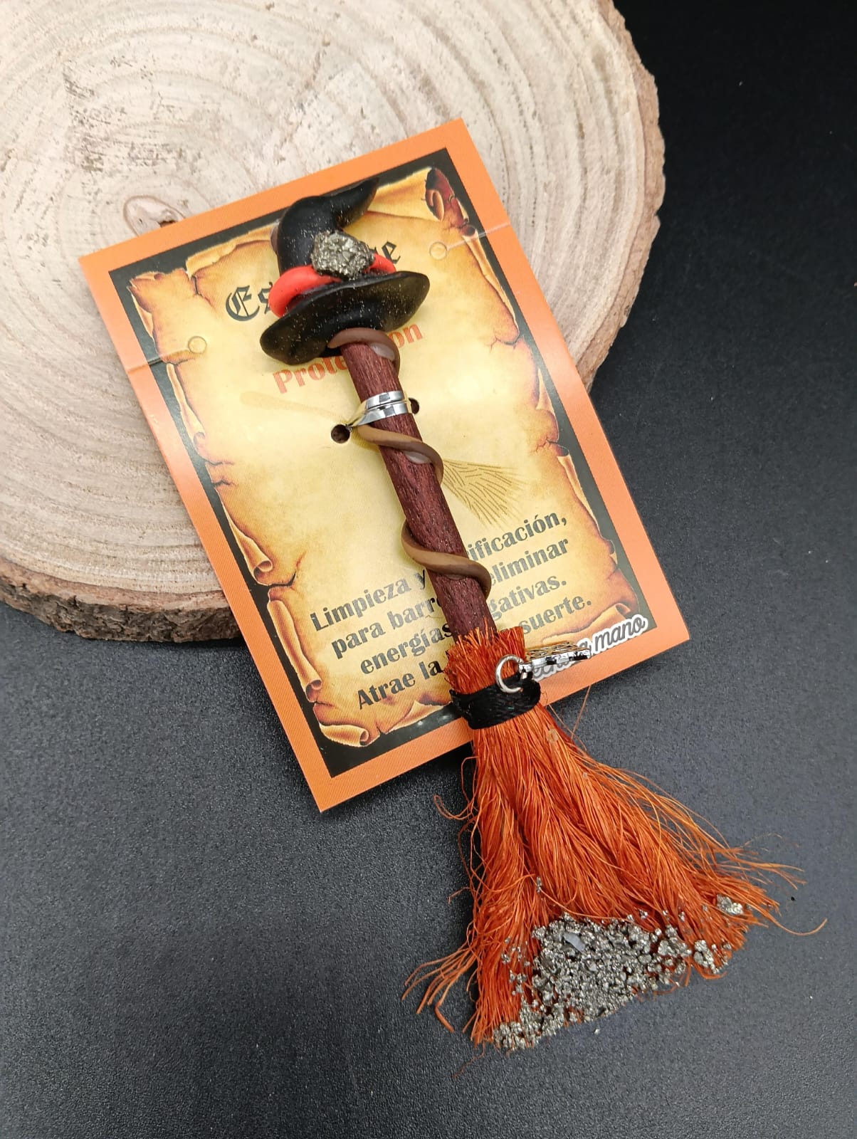 Esta escoba esotérica ha sido elaborada para trabajar la protección energética, creando un escudo que ayuda a repeler energías negativas, envidias, mal de ojo y cualquier influencia externa que pueda afectar el bienestar personal o del entorno. Su acción principal es limpiar y sellar energéticamente, aportando estabilidad, seguridad y resguardo espiritual.
