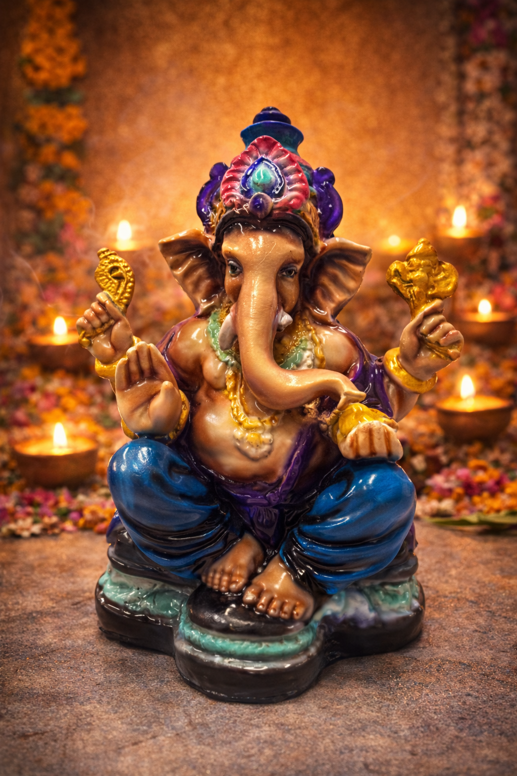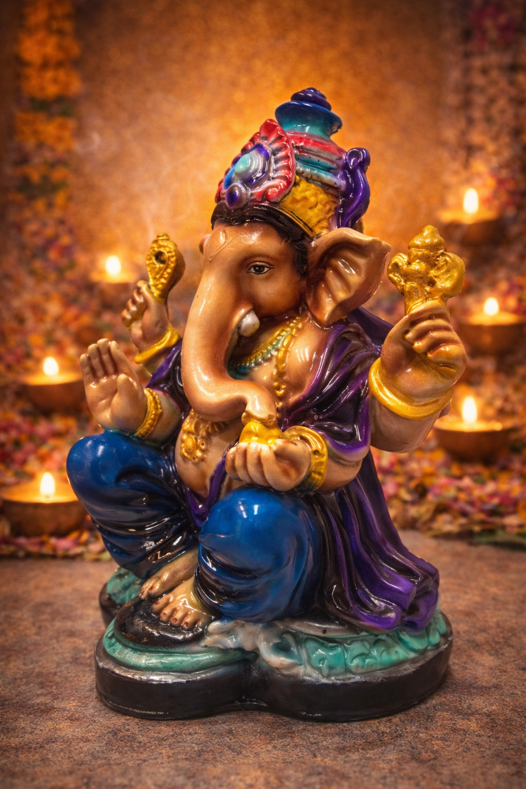 Figura Dios Ganesh Mod 1 Colores Ropa Morada 17 cm