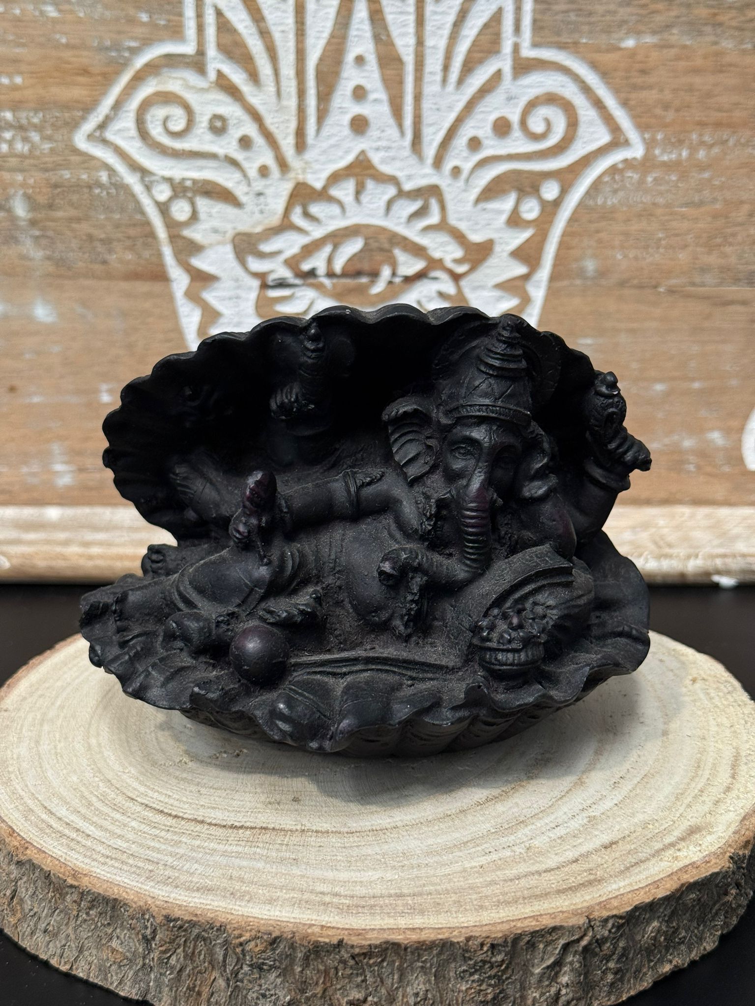 Figura de Ganesha Tumbado en Concha – Color Negro (9×12 cm)