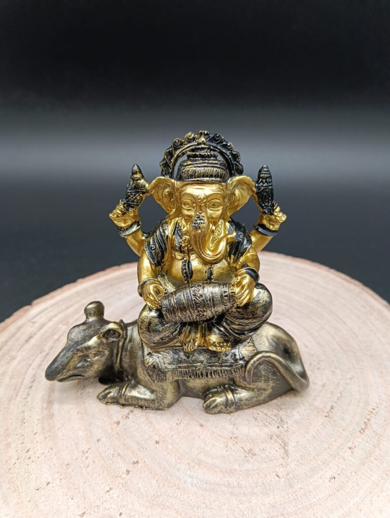 Una estantería. Una mesa. Un espacio limpio, cuidado. Coloca ahí tu figura de Ganesha. Puede ser esta versión sobre el ratón o cualquier otra que te transmita algo. No por superstición, sino por vibración.