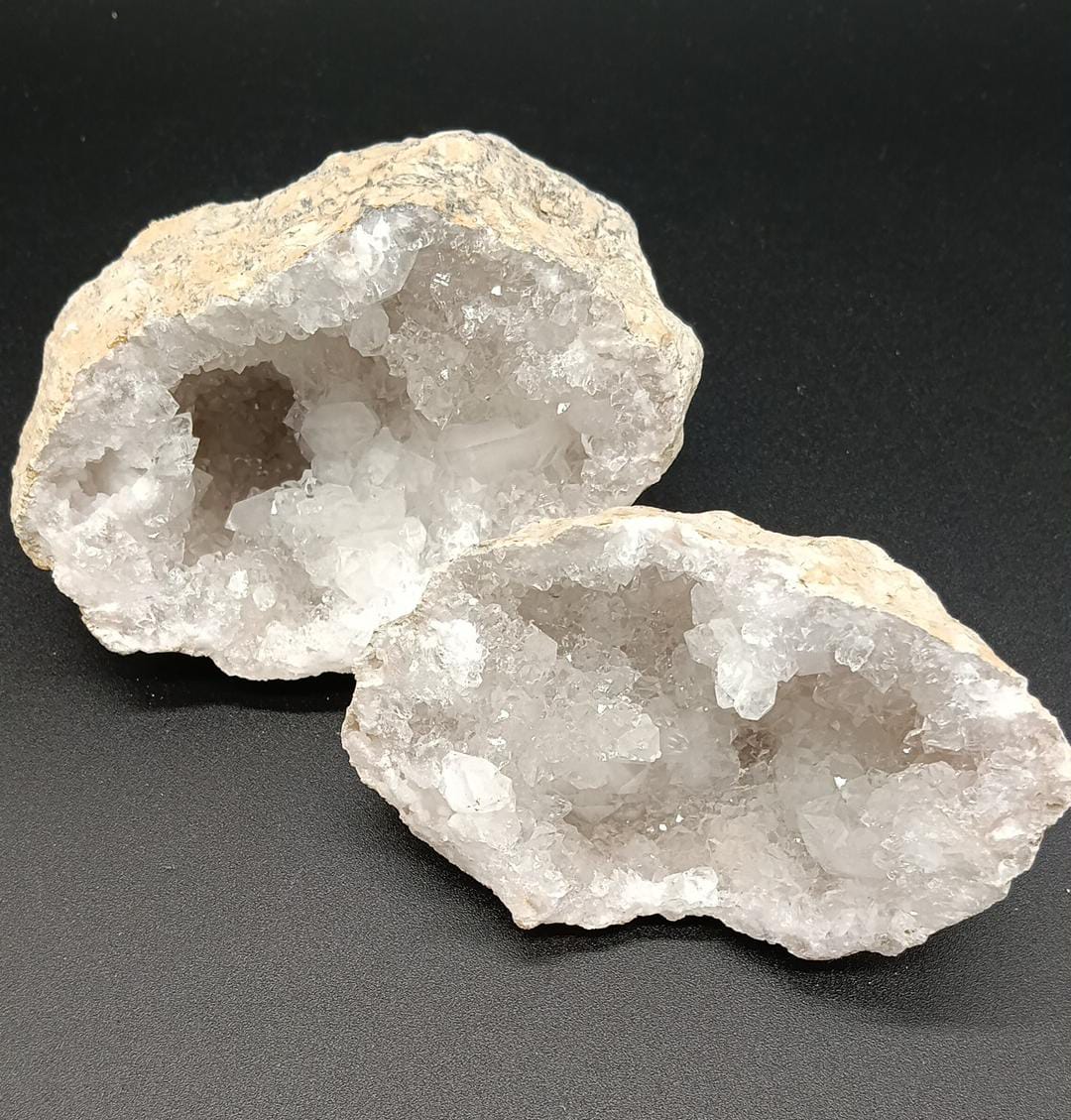 Protección y limpieza energética: Se cree que las geodas tienen propiedades de protección energética y pueden actuar como escudos ante energías negativas o no deseadas. También se utilizan para limpiar otras piedras o cristales, ya que su interior hueco las hace adecuadas para este propósito.