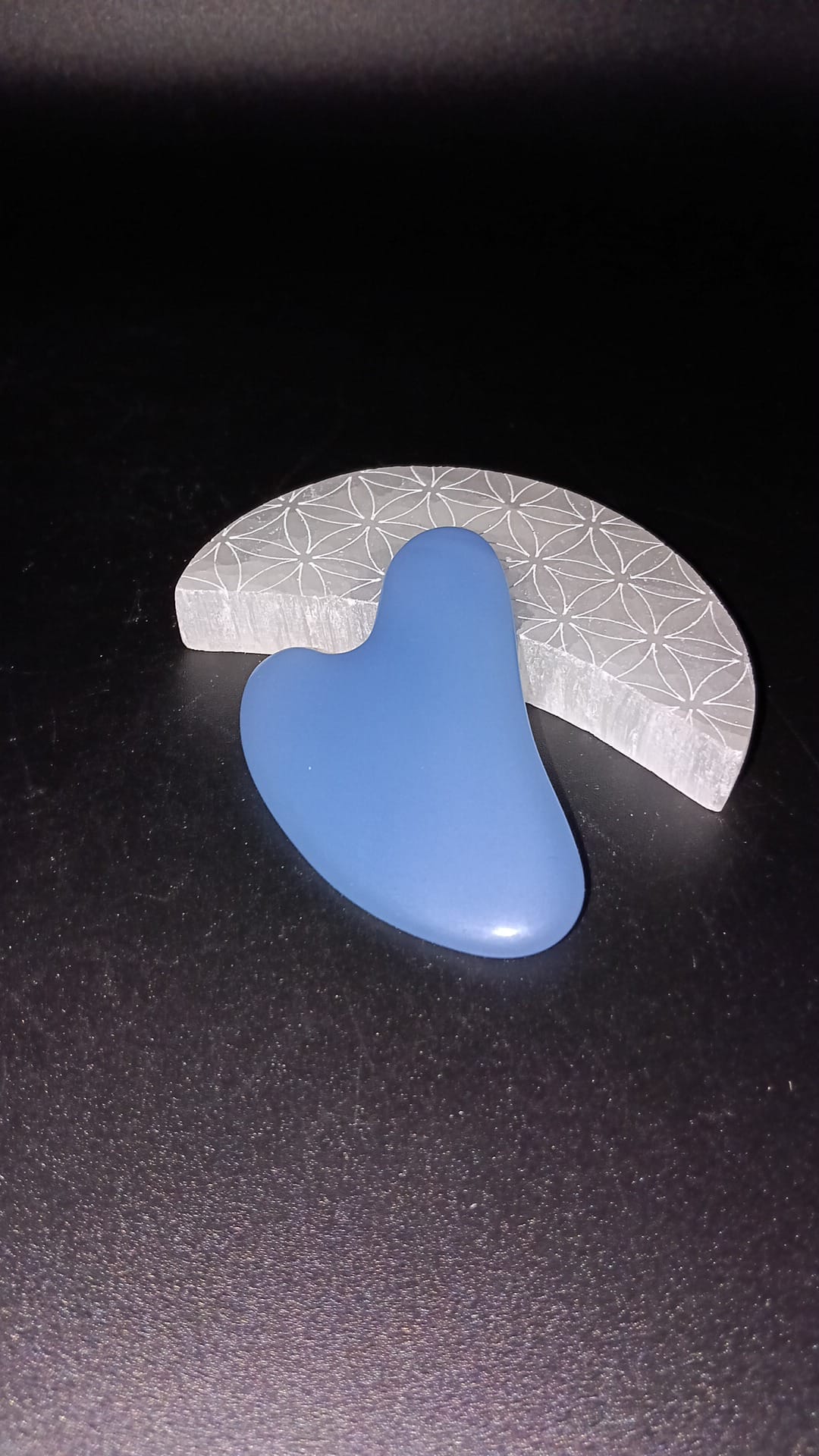 Nota: Al ser una pieza natural, el tono y las vetas del cuarzo azul pueden variar ligeramente, haciendo de cada gua sha una pieza única con su propia energía.