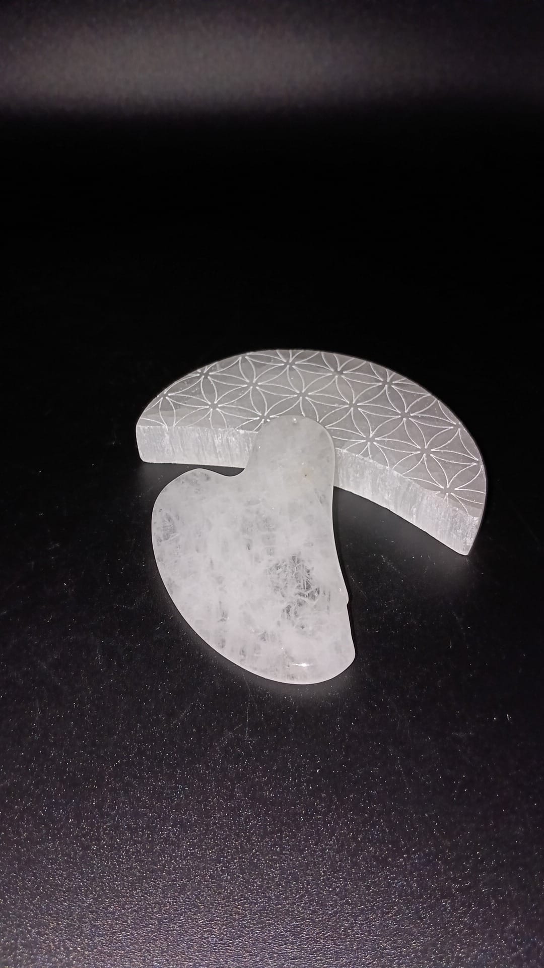 Nota: Al ser una pieza natural, el tono, la transparencia y las vetas del cuarzo blanco pueden variar ligeramente, haciendo de cada gua sha una pieza única con su propia energía.