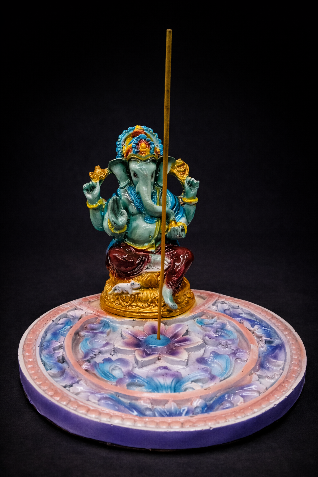 Este hermoso incensario de Ganesha está diseñado para acompañar rituales de meditación, limpieza energética y apertura de caminos, convirtiéndose en una pieza ideal para cualquier altar espiritual o espacio de armonización. Ganesha, una de las deidades más veneradas de la tradición hindú, es conocido como el removedor de obstáculos y el protector de los nuevos comienzos, invocado desde tiempos ancestrales para atraer prosperidad, abundancia, éxito y buena suerte.