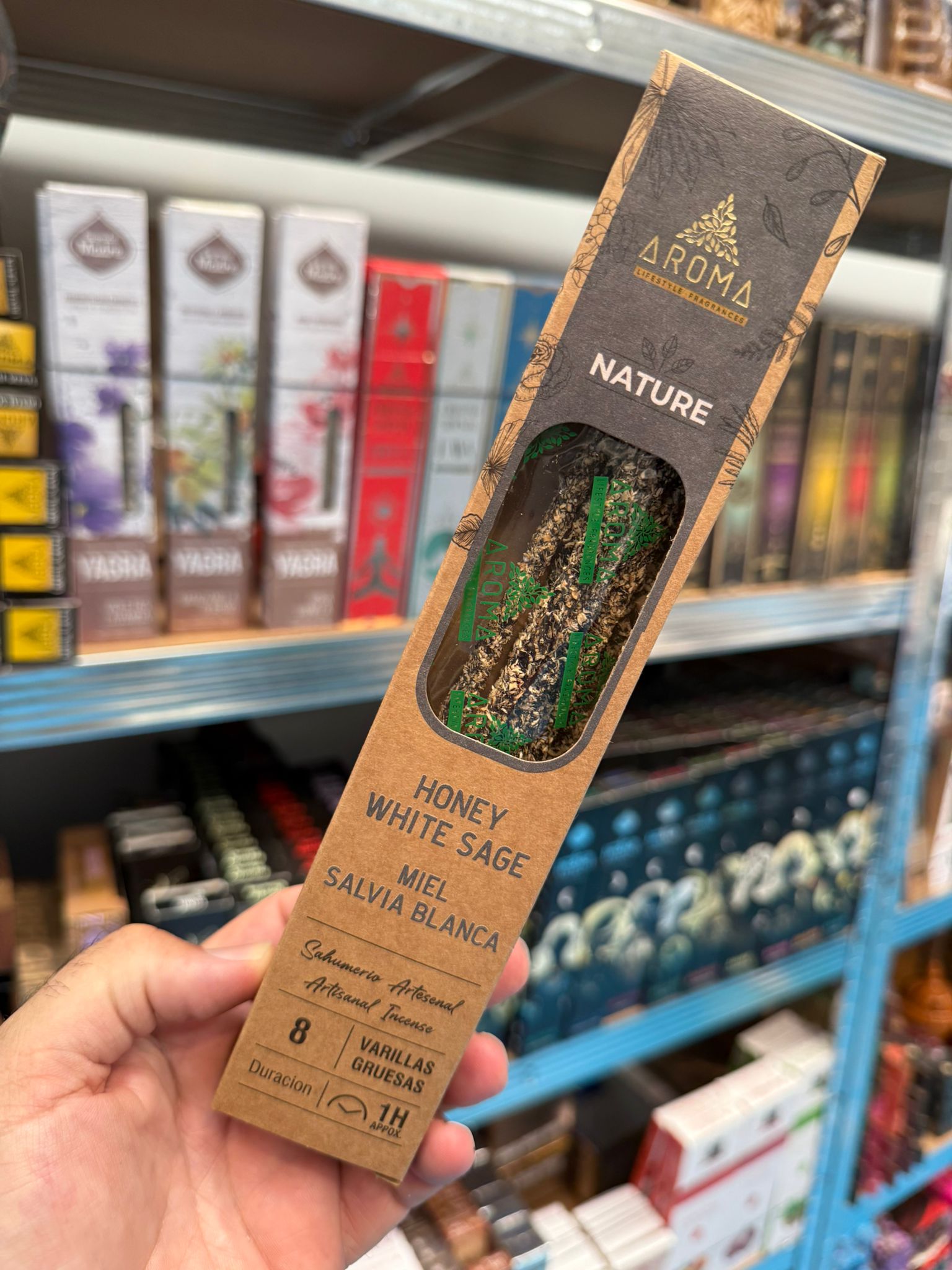 Este incienso une el poder ancestral de la salvia blanca con la dulzura sanadora de la miel, creando una experiencia aromática profunda y armonizadora. Cada varilla ha sido formulada para sostener procesos de limpieza energética, conexión espiritual y apertura emocional.