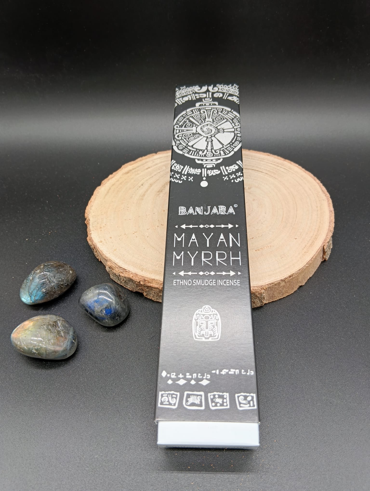 El Incienso Banjara Mayan Myrrh de la línea Aztec ofrece la fragancia cálida, resinosa y ligeramente dulce de la mirra, reconocida por sus propiedades purificadoras y espirituales. Elaborado artesanalmente con resinas naturales y aceites esenciales de alta calidad, está diseñado para limpiar la energía del espacio y favorecer la concentración, la meditación y los rituales de introspección.