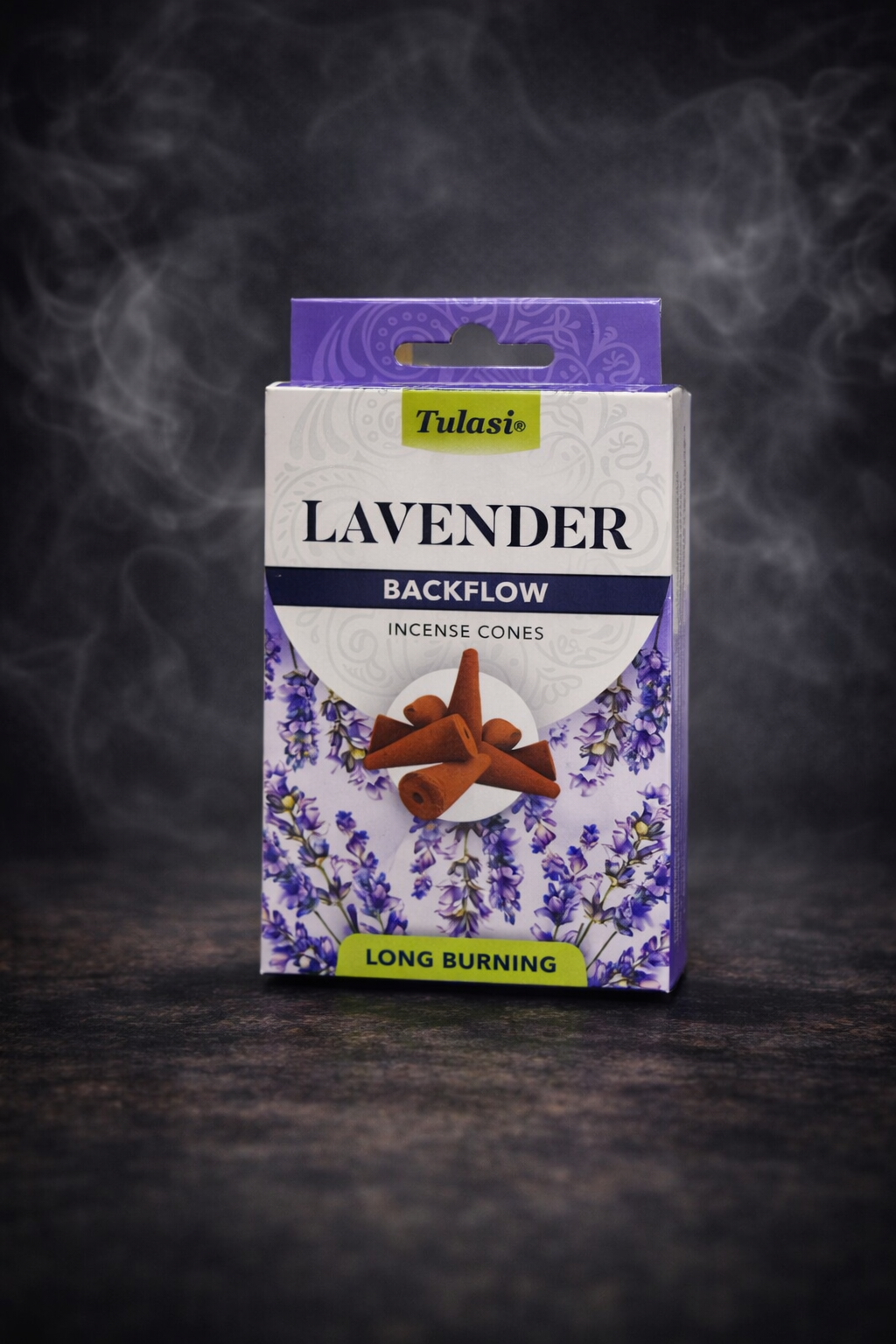 Incienso de reflujo marca Tulasi aroma Lavanda (10 conos por caja)