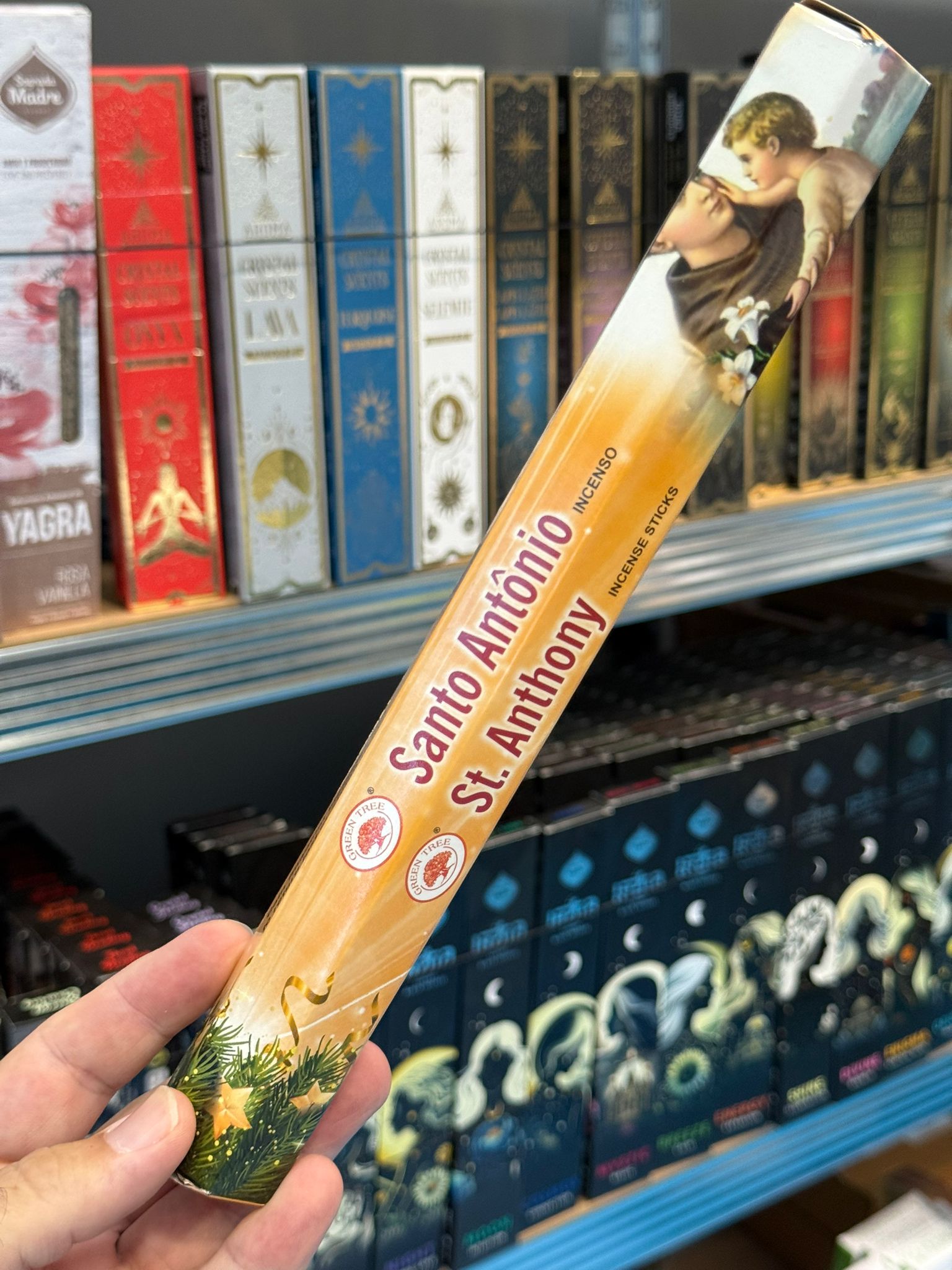 El incienso San Antonio de la marca Green Tree está dedicado a uno de los santos más populares del cristianismo, conocido como el patrono de los enamorados, los matrimonios y las causas perdidas. Su aroma suave y reconfortante ayuda a elevar las oraciones, atraer el amor verdadero y abrir caminos en situaciones difíciles.