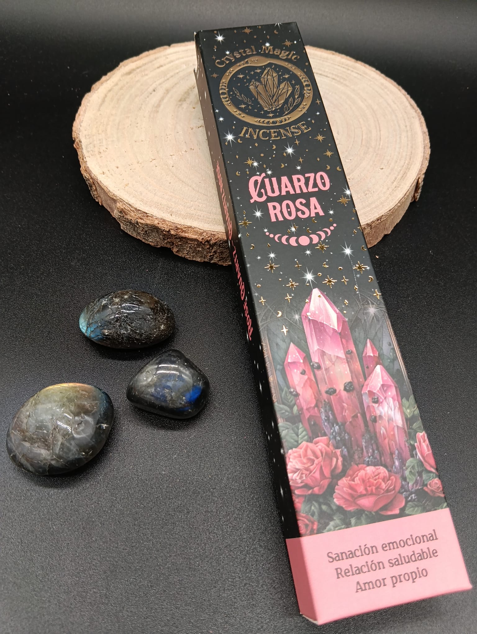 Al encenderlo, su aroma dulce y envolvente llena el espacio con una vibración de ternura y tranquilidad, ayudando a disolver tensiones, sanar emociones y favorecer la conexión amorosa, tanto con uno mismo como con los demás. El cuarzo rosa es ideal para promover la autoestima, la armonía en las relaciones y el bienestar emocional.
