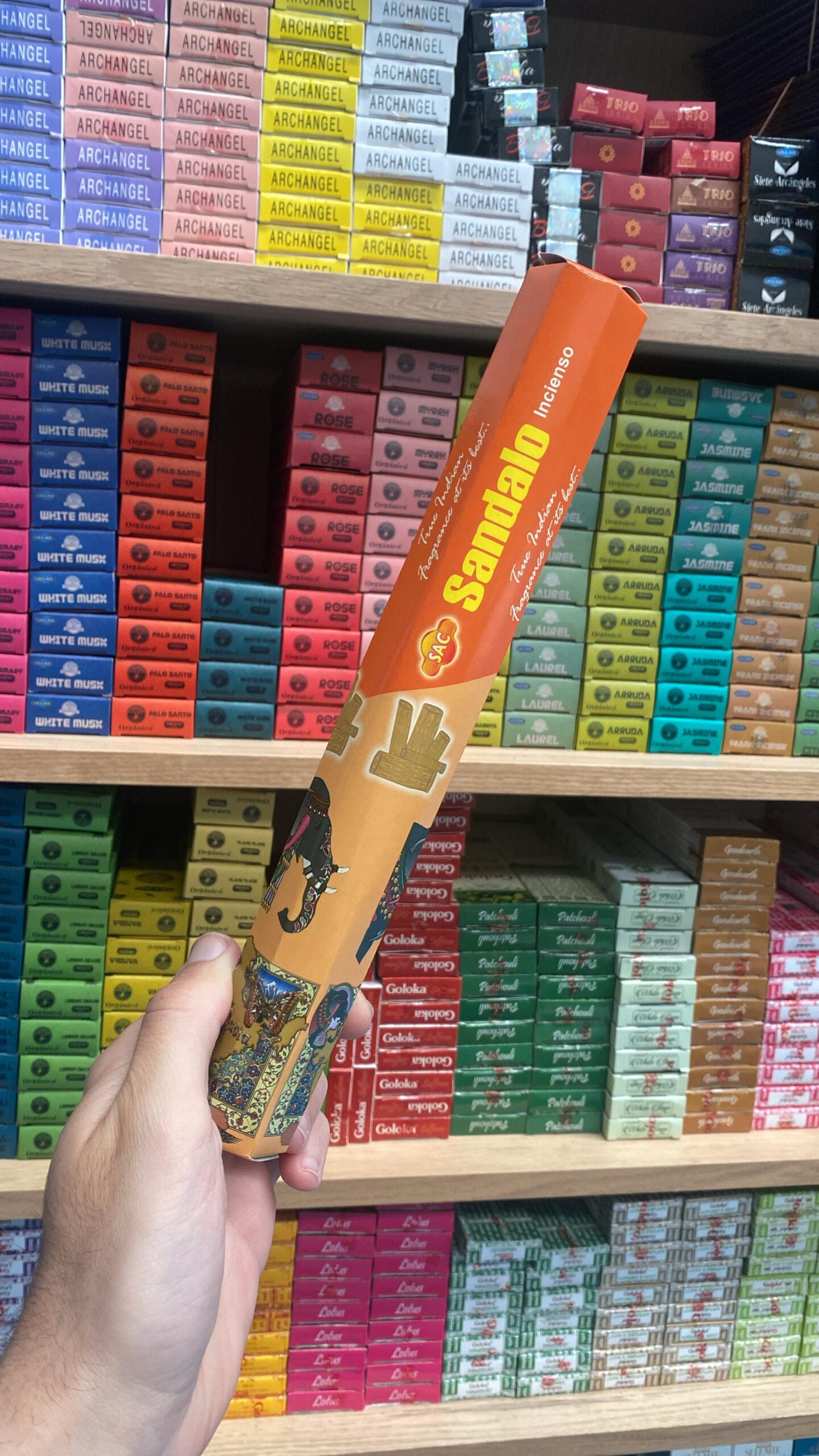 El sándalo es uno de los aromas más sagrados en la tradición espiritual oriental. El incienso SAC Sándalo ofrece una fragancia cálida, suave y ligeramente dulce, ideal para crear un ambiente de tranquilidad, armonía y meditación profunda. Su humo sutil purifica, eleva la vibración y centra la mente.