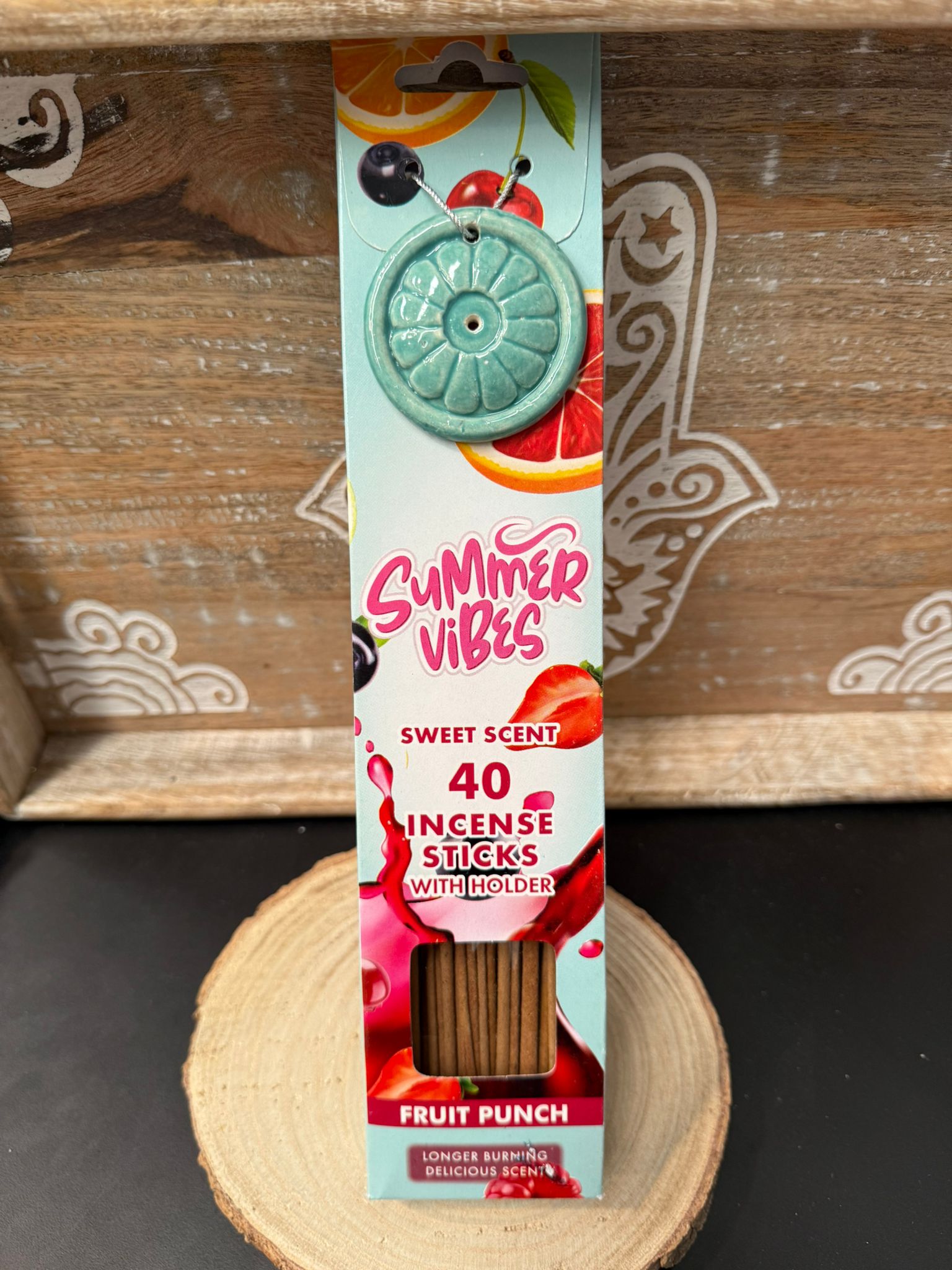 El incienso de ponche de frutas despliega una mezcla vibrante, dulce y jugosa que evoca la abundancia tropical, la energía del verano y la alegría compartida. Esta fragancia, multicolor en esencia, es una celebración sensorial que despierta el entusiasmo, fomenta la conexión y armoniza el campo energético con una vibración cálida y expansiva.