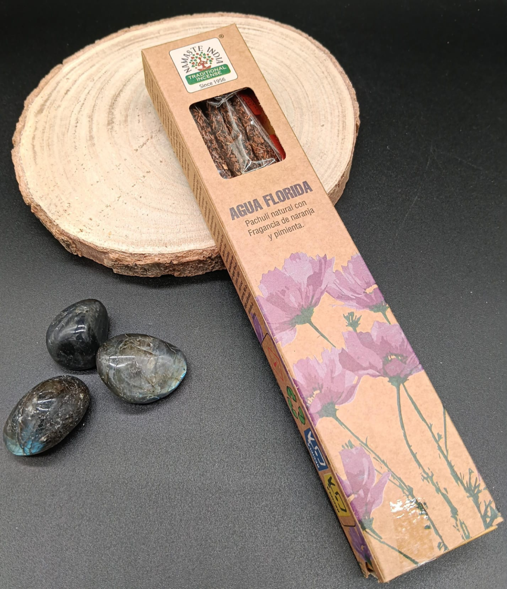 El incienso de Agua de Florida Namaste India es un hallazgo. Combina patchouli, naranja y pimienta. Traducción: limpieza con vitalidad. Es perfecto para levantar el ánimo, armonizar relaciones y traer claridad a una mente saturada.