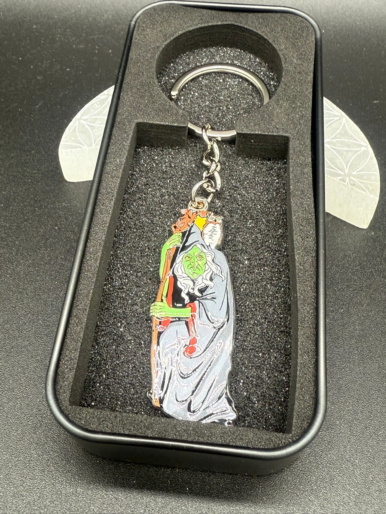 Este llavero es un amuleto portátil que canaliza la energía mística y la sabiduría ancestral de la brujería. Diseñado para acompañarte en tu camino espiritual, protege y potencia tu intuición, abriendo puertas hacia el conocimiento oculto y la conexión con la magia interior. Perfecto para quienes desean llevar consigo un símbolo de poder personal y protección energética en su vida diaria.