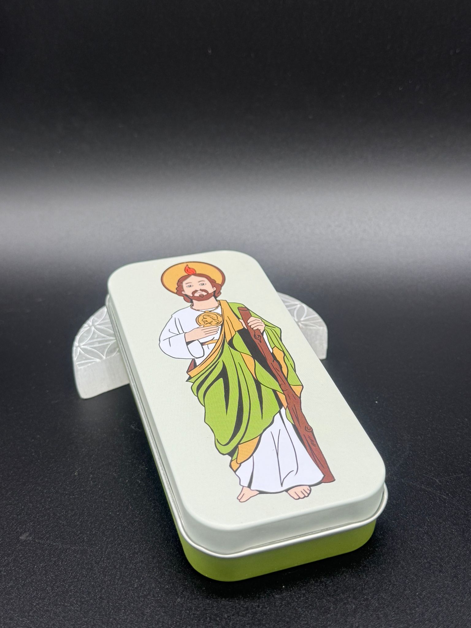 Este llavero con la imagen de San Judas Tadeo, patrono de los casos difíciles y desesperados, es un amuleto de fe y protección para llevar siempre contigo. Ideal para quienes buscan guía espiritual, fortaleza en tiempos de dificultad y una conexión constante con la energía del santo.