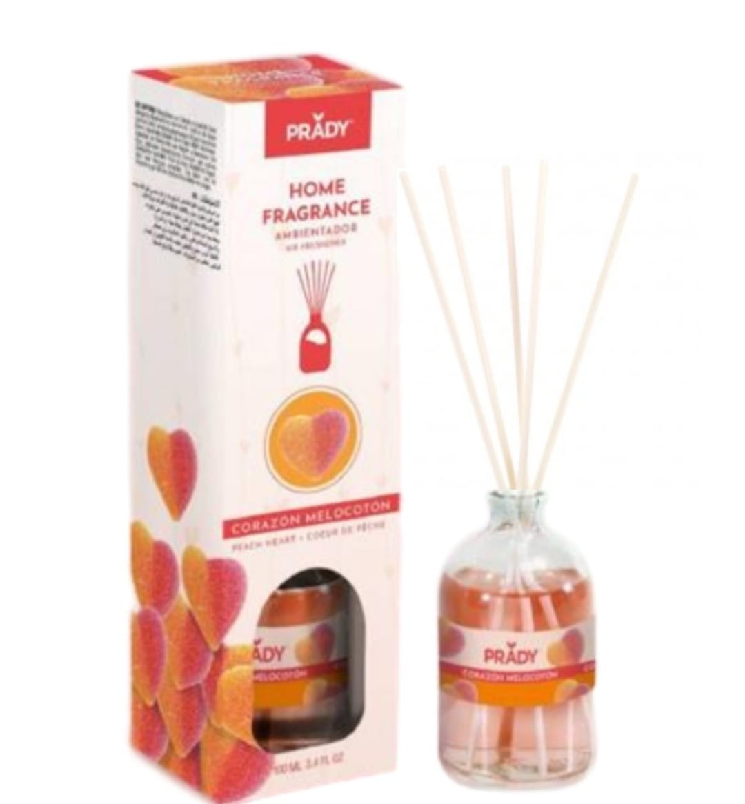 Ambientador de mikado de la marca PRADY (100 ml) de corazón de melocotón.