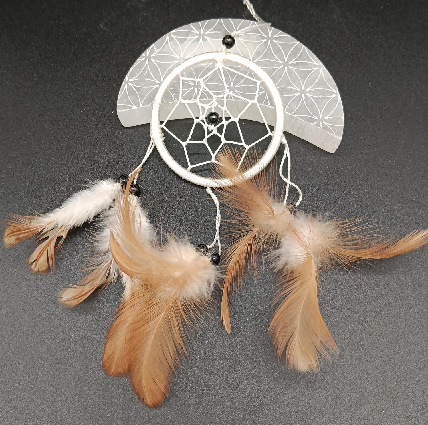 El atrapasueños se compone de un aro de madera, y representa la rueda de la vida. Dentro de este aro, se teje una red o malla con hilos que representan nuestros sueños. En el centro de la red hay un vacío que representa el gran misterio de los sueños.