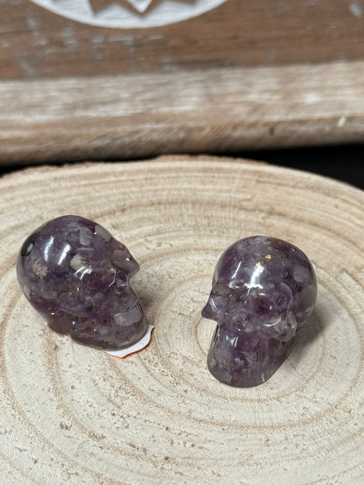 La calavera de orgonita con amatista es una pieza energética única, ideal para quienes buscan protección, limpieza espiritual y conexión interior. Elaborada artesanalmente, combina resina, virutas metálicas y amatista natural, formando un potente generador de orgón capaz de equilibrar la energía del ambiente.