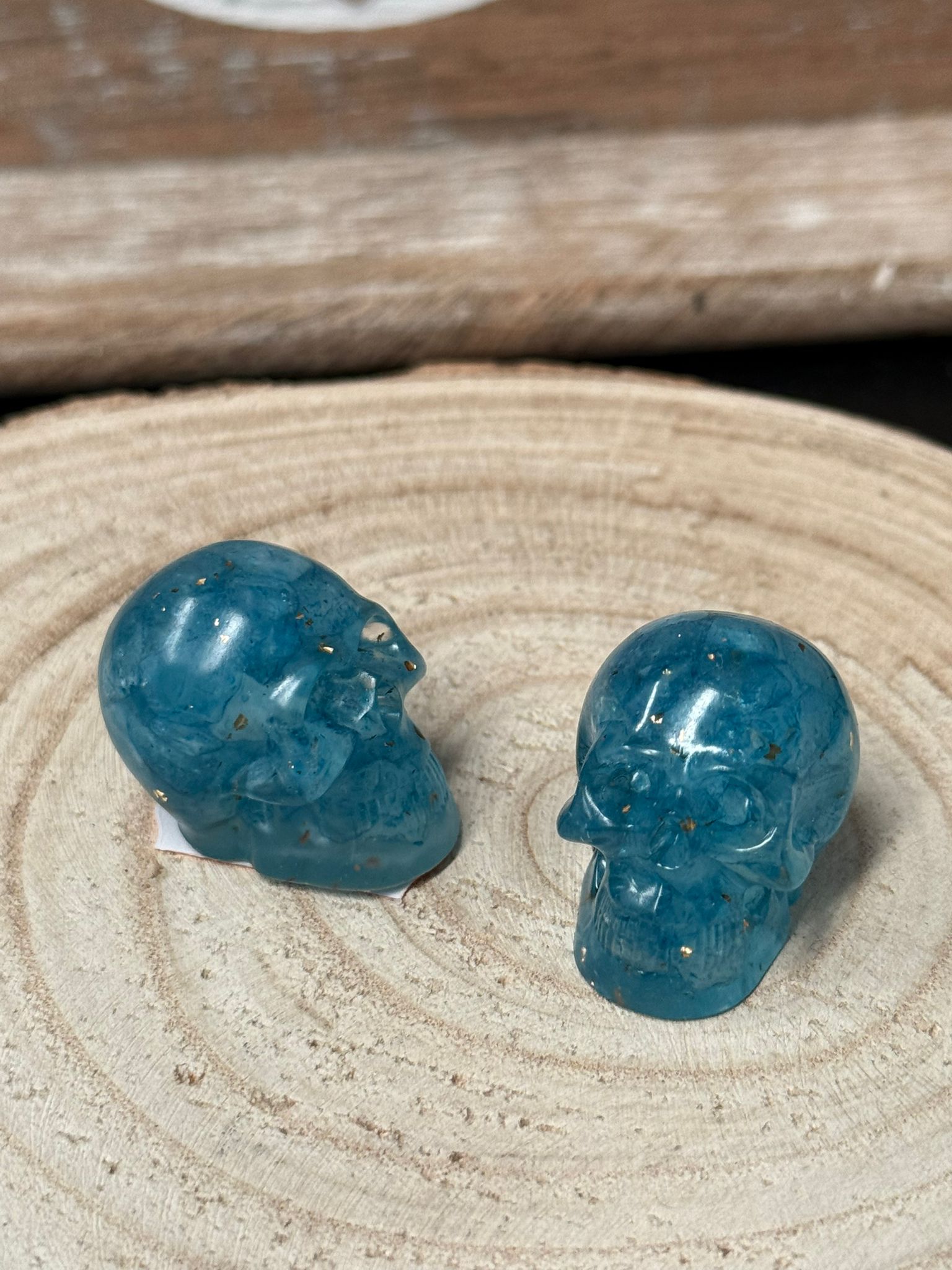 La calavera de orgonita con cuarzo azul es una pieza energética diseñada para promover la comunicación consciente, la calma mental y la claridad emocional. Elaborada con resina, metales y cuarzo azul natural, actúa como un equilibrador energético que limpia el entorno de cargas negativas y favorece un estado de tranquilidad interior.