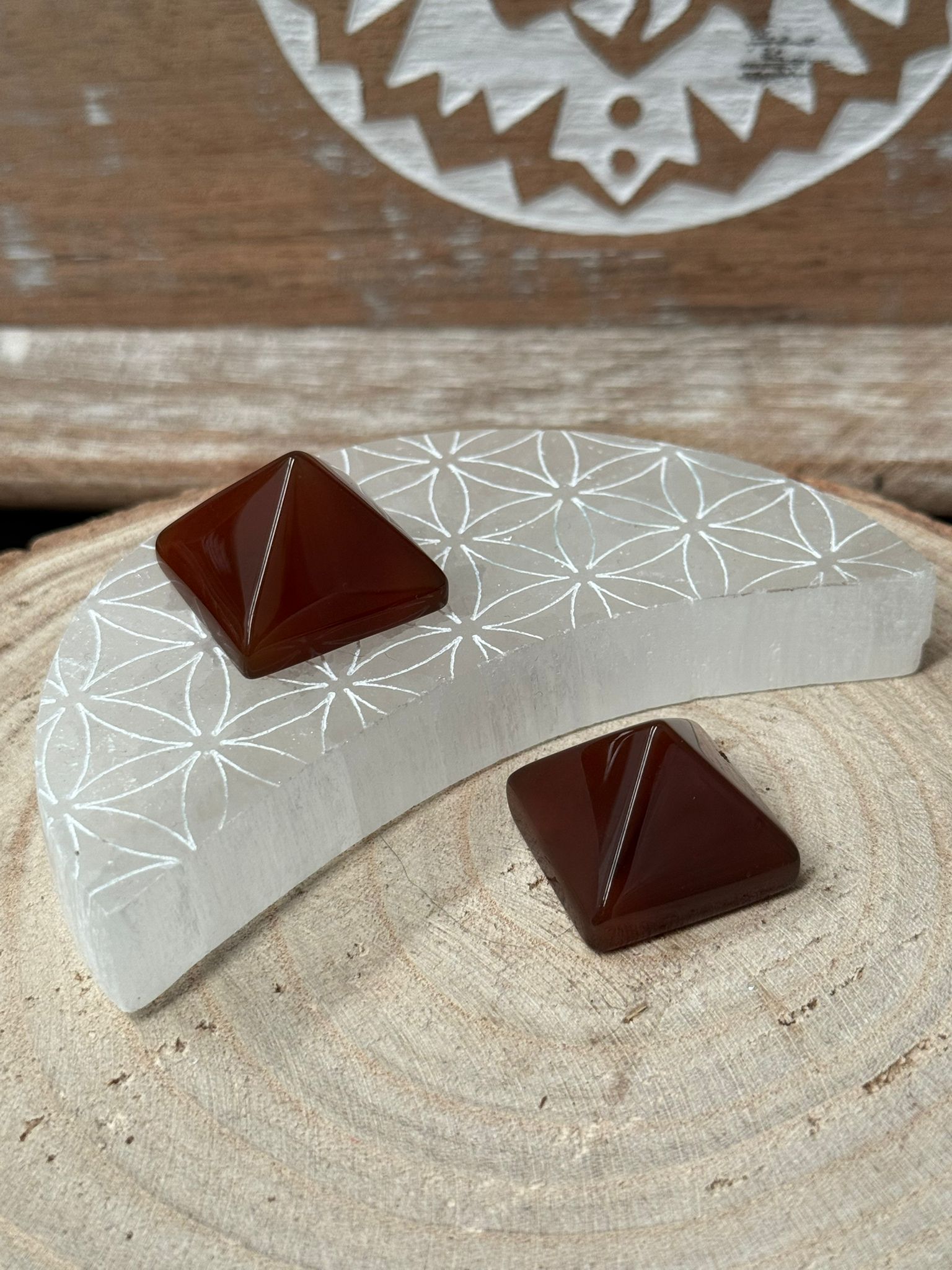 Material: Cornalina natural tallada y pulida en forma piramidal.