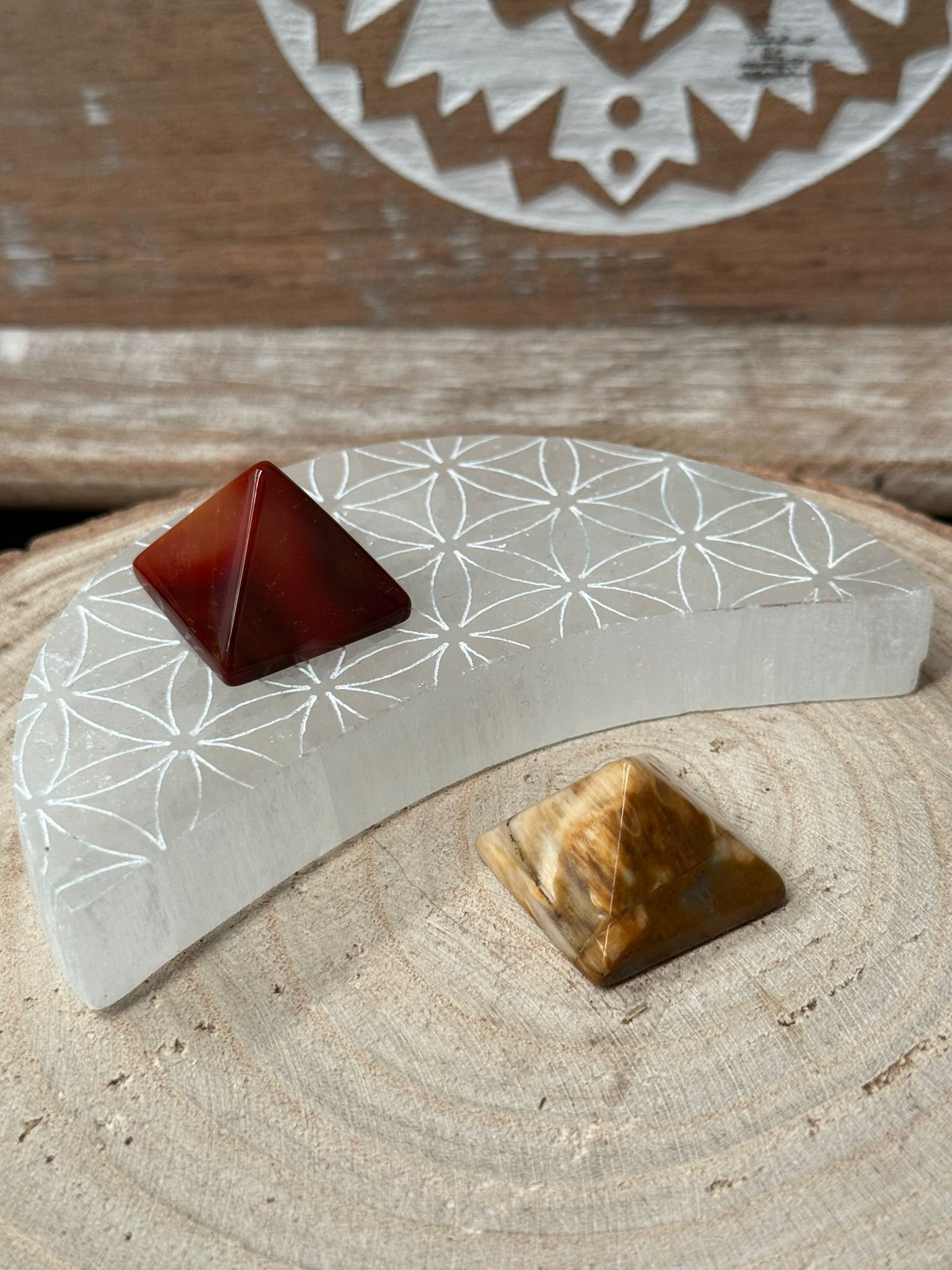 La forma piramidal canaliza y amplifica estas energías, convirtiendo esta pieza en un poderoso centro de estabilidad, decisión y conexión con la fuerza vital de la Tierra. Es ideal para acompañar procesos de cambio, fortalecimiento personal y conexión con la sabiduría interior.
