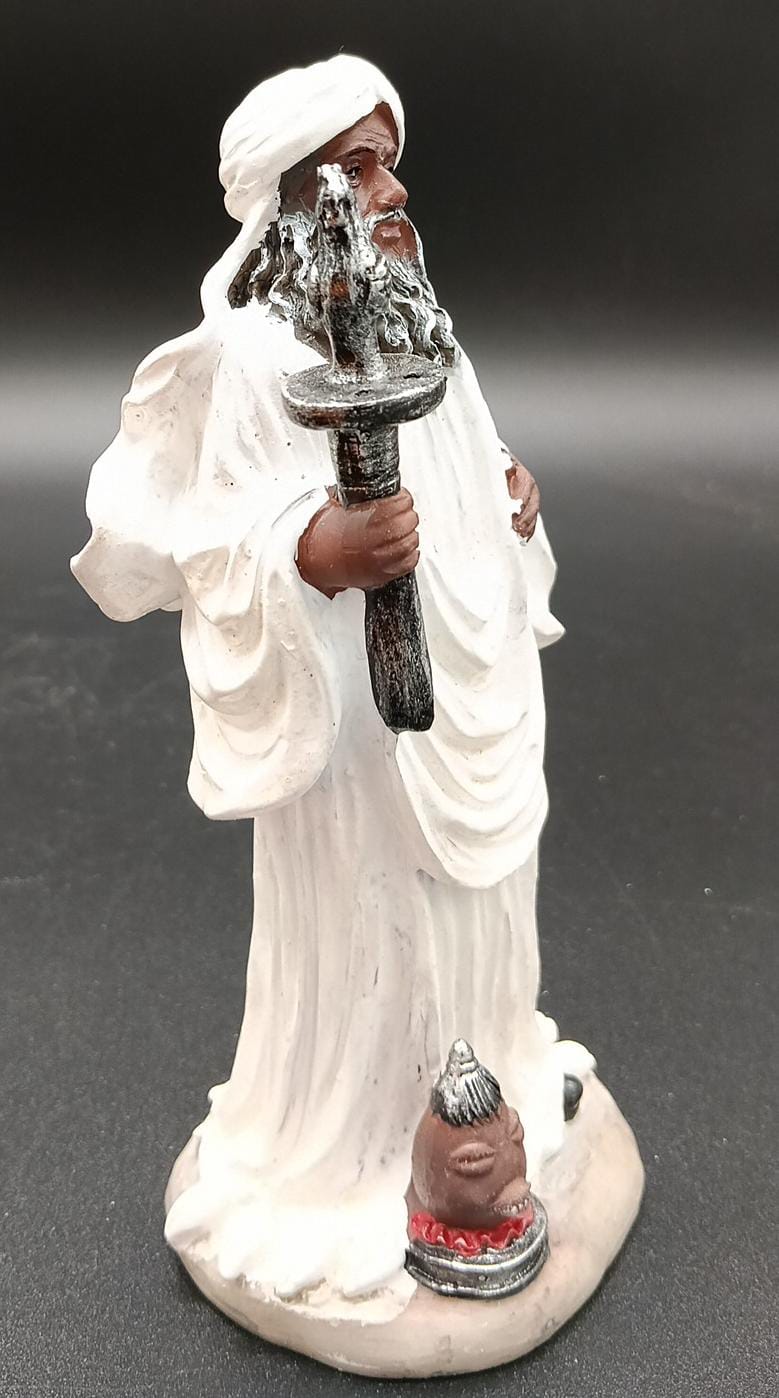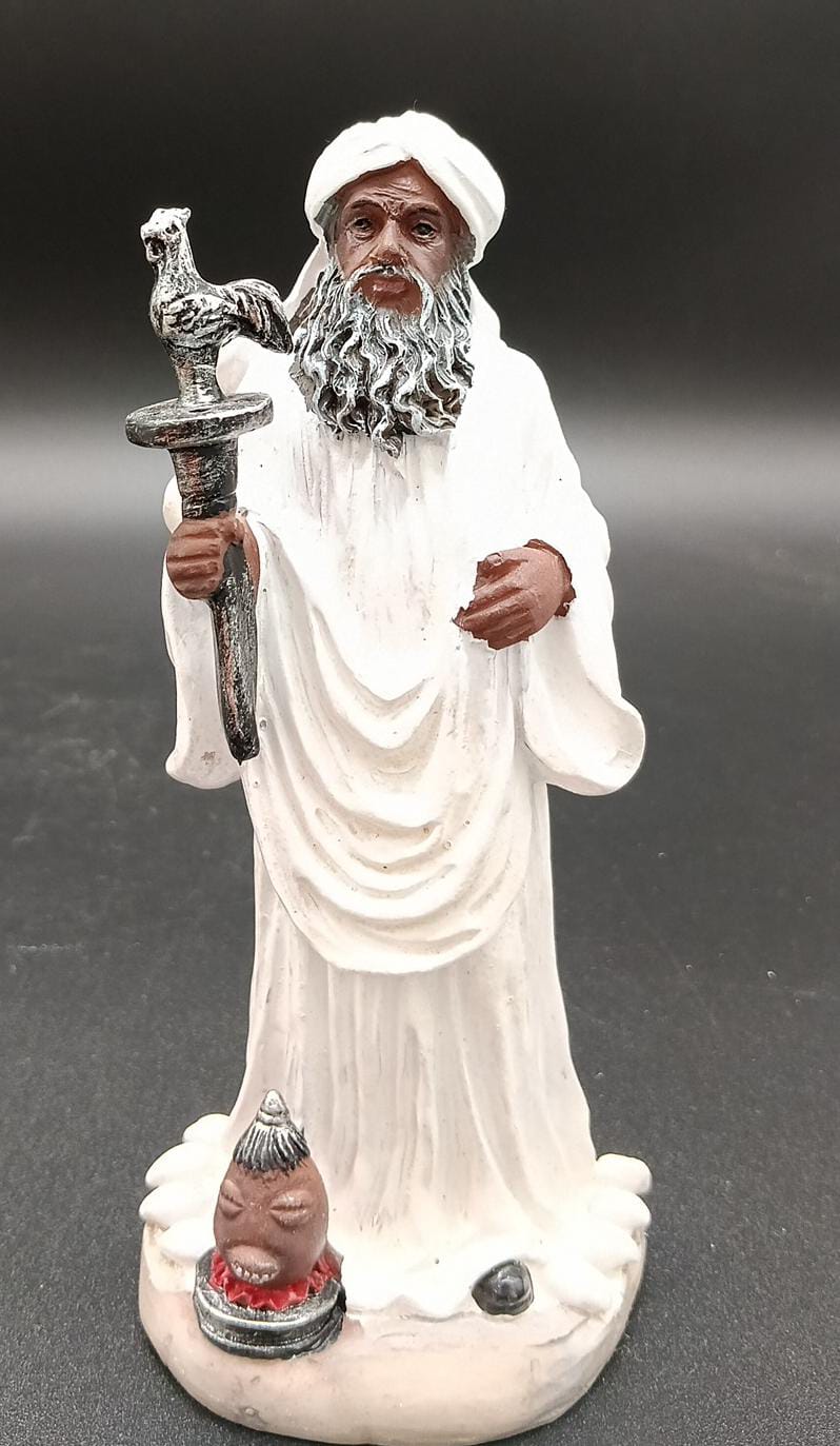 Esta figura de Obatalá, de 15 cm de altura, encarna la sabiduría serena, la pureza y la luz que caracterizan al Orisha creador dentro de la tradición yoruba. Obatalá es el regente de la paz, la claridad mental y la armonía espiritual; su presencia invita al equilibrio, a la reflexión profunda y a la elevación de la conciencia.