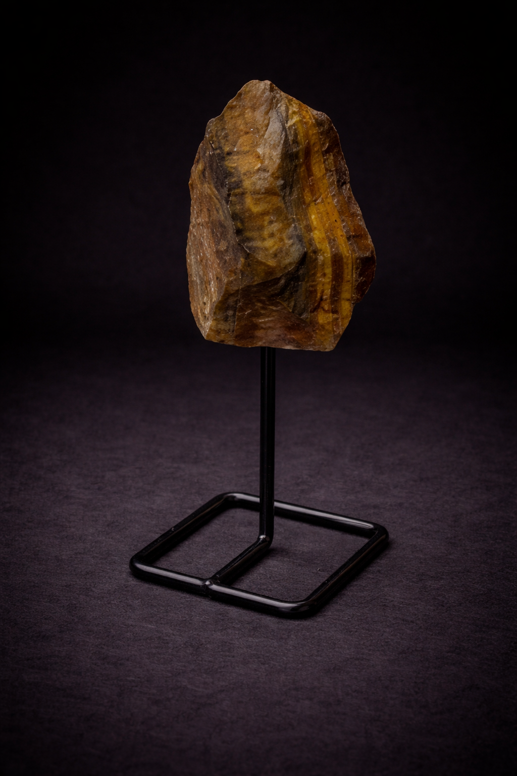 Peana de Metal con Ojo de Tigre en Bruto – Protección, Enfoque y Energía Vital